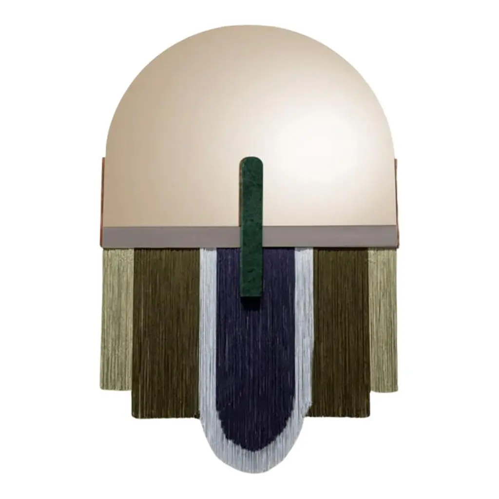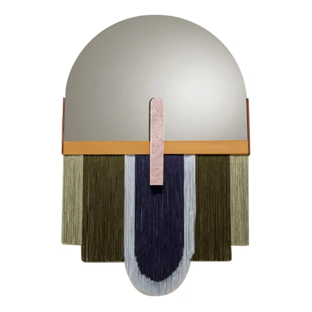 Created by the perfect combination of color, energy and shape, Souk mirrors reflect the influences of overwhelming and visually fascinating Souk markets in northern Africa with its vibrant fringes and earthy colors resembling typical macramé techniques.MaterialTop Mirror : Gris mirror, Bronze mirror, Aged mirrorMarble Application : Estremoz White, Estremoz Rose, Guatemala Green and Nero MarquinaMetal Application : Polished or Satin Brass or NickelFringes : Three color combinations availableSizeW 24" x H 38".