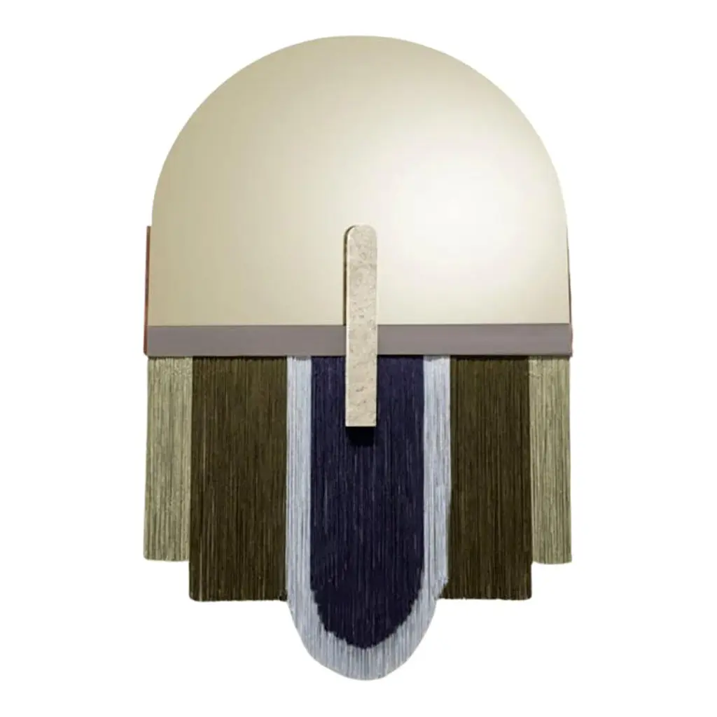 Created by the perfect combination of color, energy and shape, Souk mirrors reflect the influences of overwhelming and visually fascinating Souk markets in northern Africa with its vibrant fringes and earthy colors resembling typical macramé techniques.MaterialTop Mirror : Gris mirror, Bronze mirror, Aged mirrorMarble Application : Estremoz White, Estremoz Rose, Guatemala Green and Nero MarquinaMetal Application : Polished or Satin Brass or NickelFringes : Three color combinations availableSizeW 24" x H 38".
