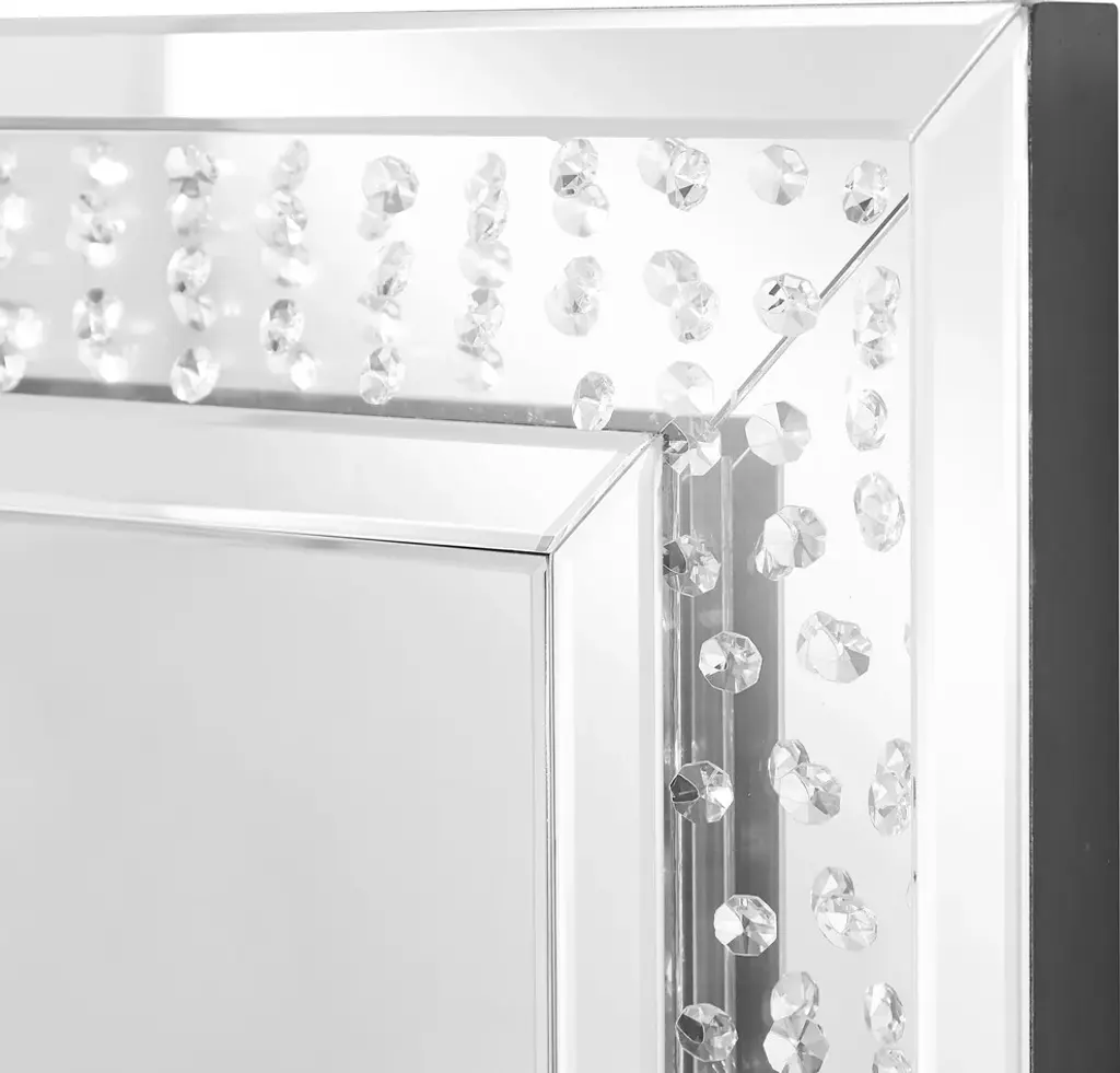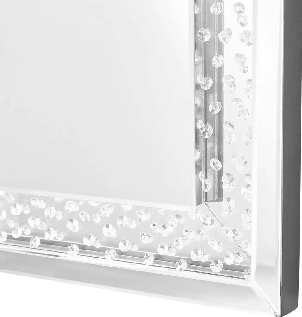 The Sparkle collection has crystal gems all over inside , crystals and silver mirror reflect shine. It combine both the function and decoration to set your house. Make a striking statement in your home or office with this stunning contempo style clear mirror. Featuring dozens of expertly cut, beveled edge mirror pieces, layered together to create a bold, yet elegant textured look, you can adorn any prominent wall with this dazzling contemporary mirror and be sure to catch people''s attention. Contempo rectangular sunburst style clear mirror Mirrors and all surrounding panels are made with beveled edgesContempo rectangular sunburst style clear mirrordozens of expertly cut, beveled edge mirror pieceselegant textured look