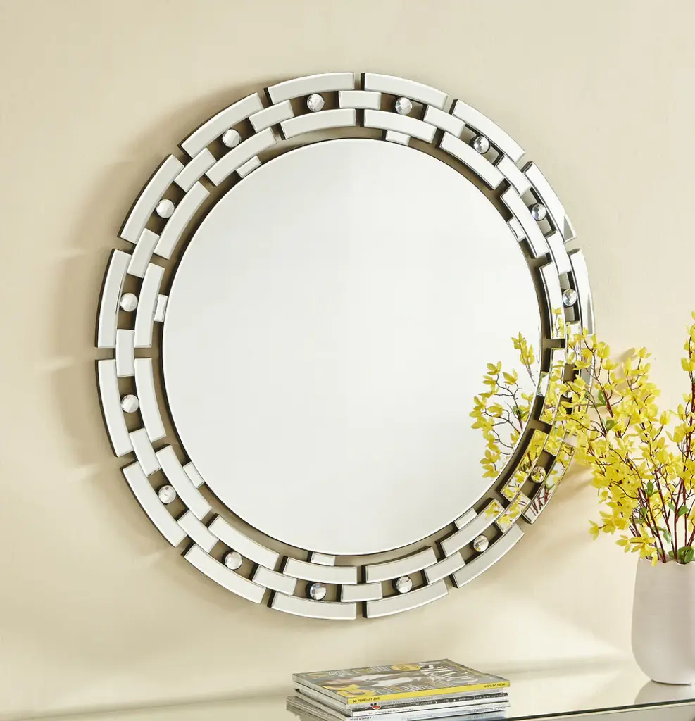 Make a striking statement in your home or office with this stunning contempo style clear mirror. Featuring dozens of expertly cut, beveled edge mirror pieces, layered together to create a bold, yet elegant textured look, you can adorn any prominent wall with this dazzling contemporary mirror and be sure to catch people''s attention. Contempo round sunburst style clear mirror Mirrors and all surrounding panels are made with beveled edges.Featuring dozens of expertly cut, beveled edge mirror pieces elegant textured look Mirrors and all�surrounding panels are made with beveled edges
