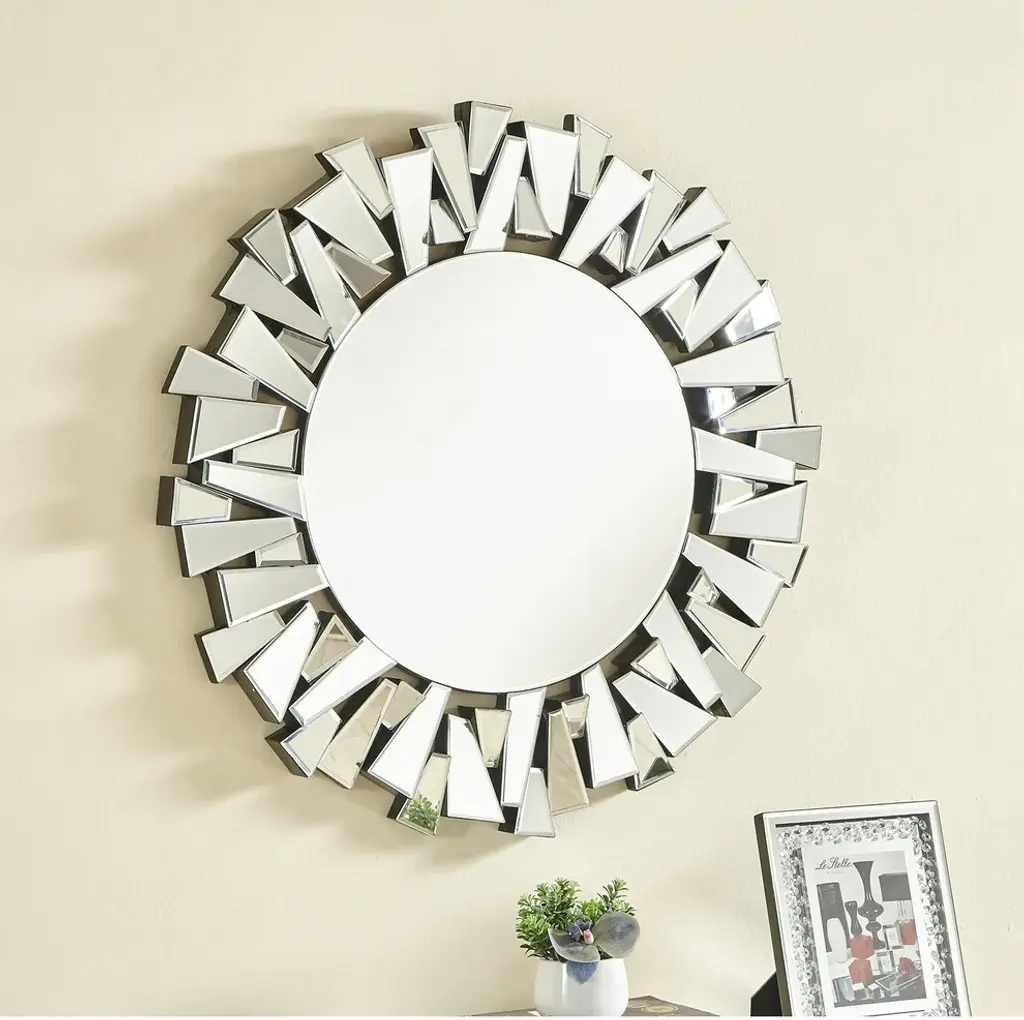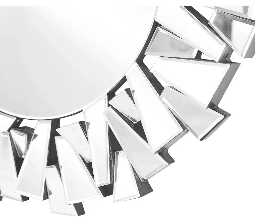 Make a striking statement in your home or office with this stunning contempo style clear mirror. Featuring dozens of expertly cut, beveled edge mirror pieces, layered together to create a bold, yet elegant textured look, you can adorn any prominent wall with this dazzling contemporary mirror and be sure to catch people''s attention. Contempo round sunburst style clear mirror Mirrors and all surrounding panels are made with beveled edges.Featuring dozens of expertly cut, beveled edge mirror pieces elegant textured look Mirrors and all�surrounding panels are made with beveled edges