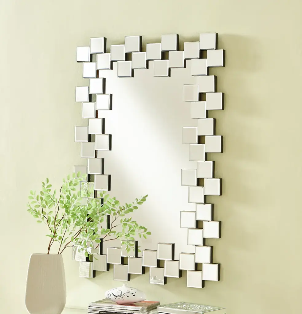 Make a striking statement in your home or office with this stunning contempo style clear mirror. Featuring dozens of expertly cut, beveled edge mirror pieces, layered together to create a bold, yet elegant textured look, you can adorn any prominent wall with this dazzling contemporary mirror and be sure to catch people''s attention. Contempo rectangle clear mirror Mirrors and all surrounding panels are made with beveled edgesFeaturing dozens of expertly cut, beveled edge mirror pieces elegant textured look Mirrors and all�surrounding panels are made with beveled edges