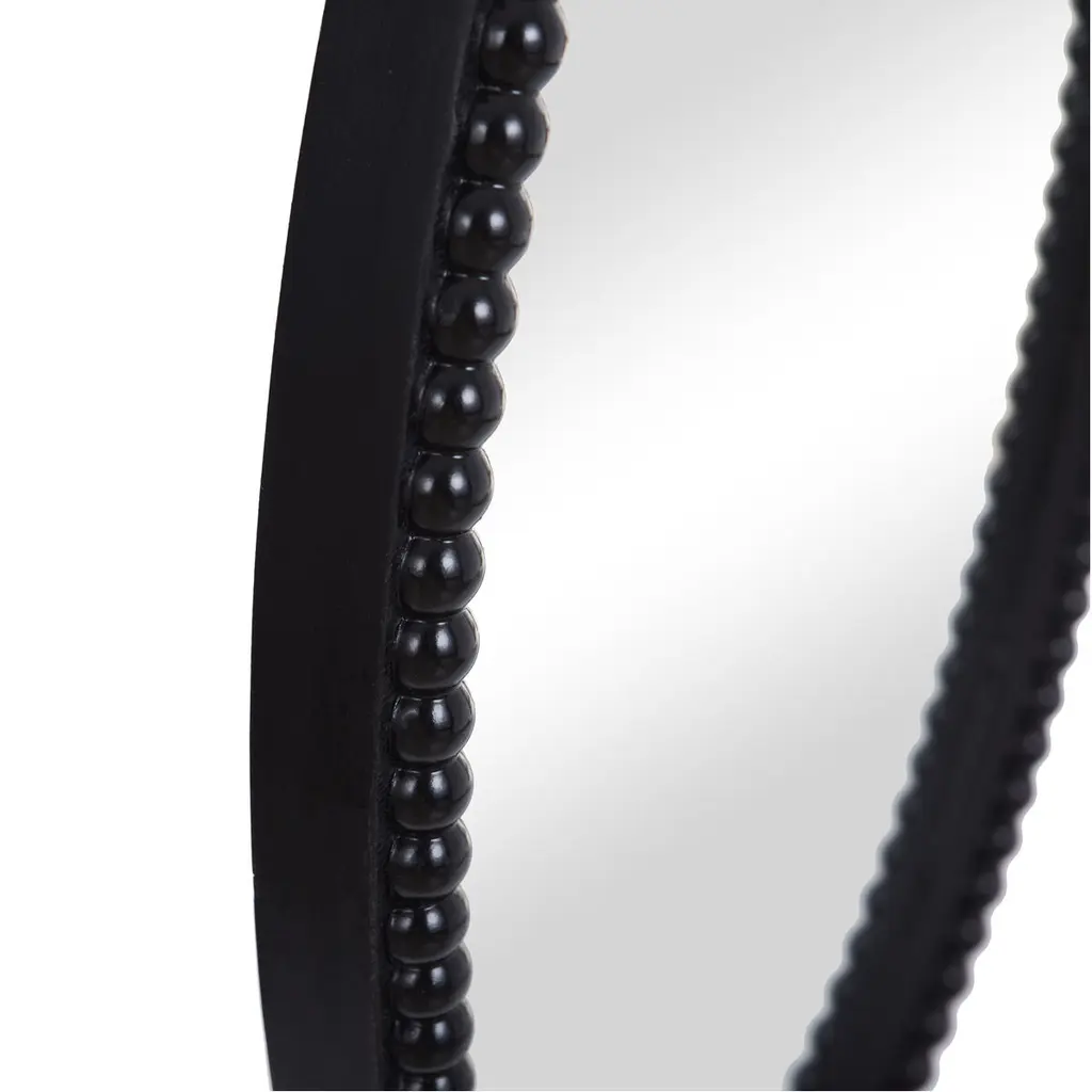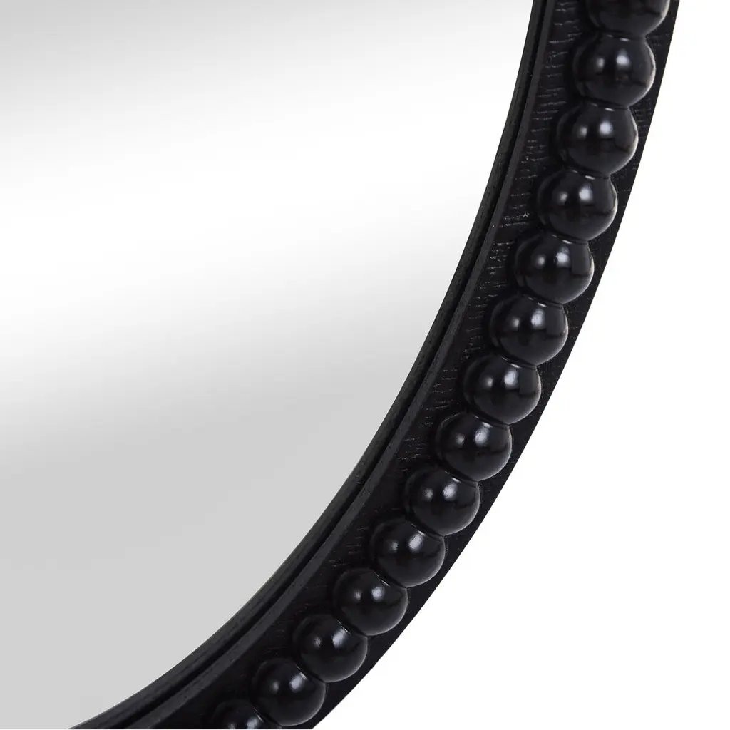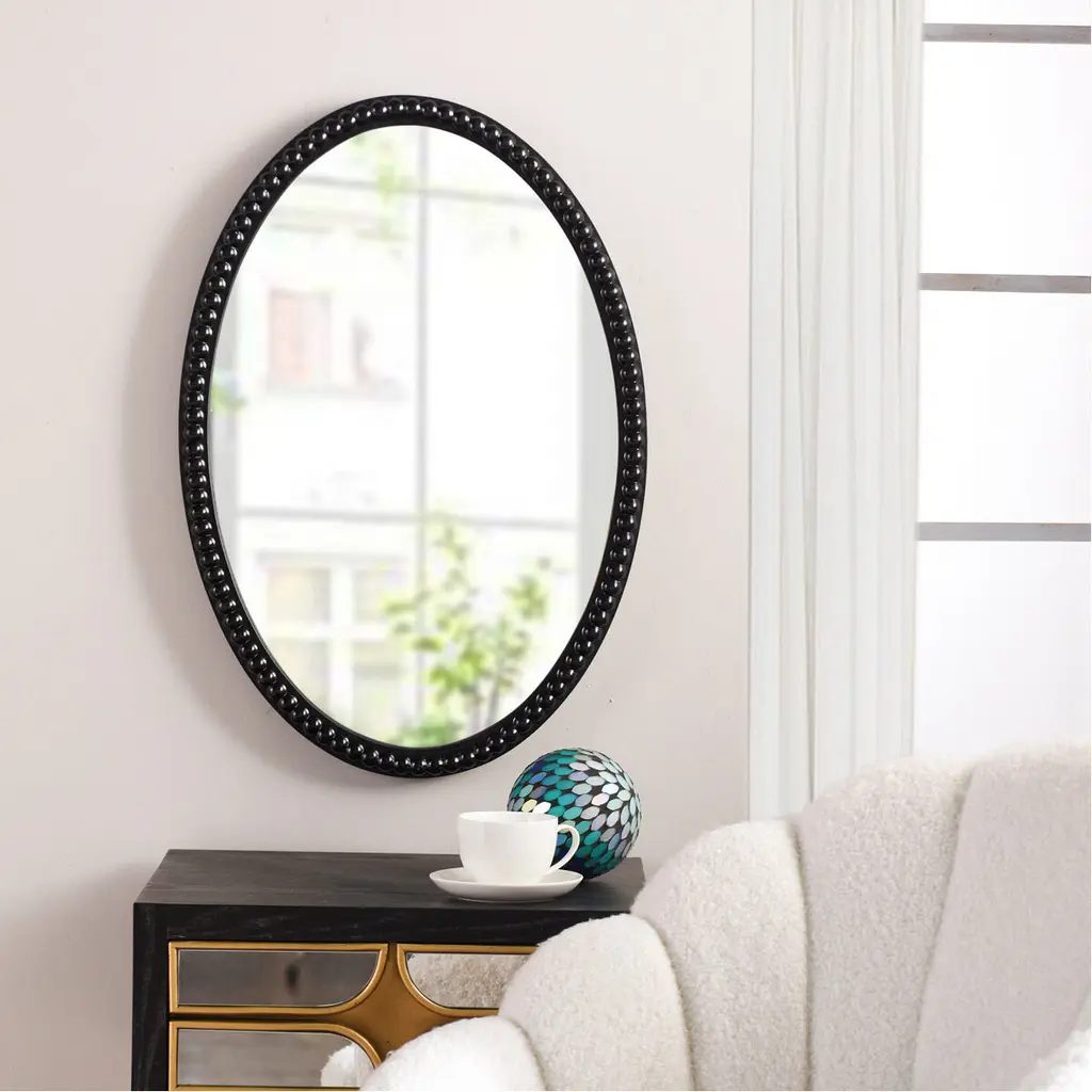 Oval Wood Frame Mirror With Beaded Trim - Black Finish