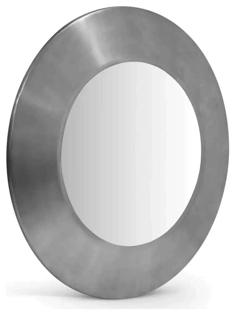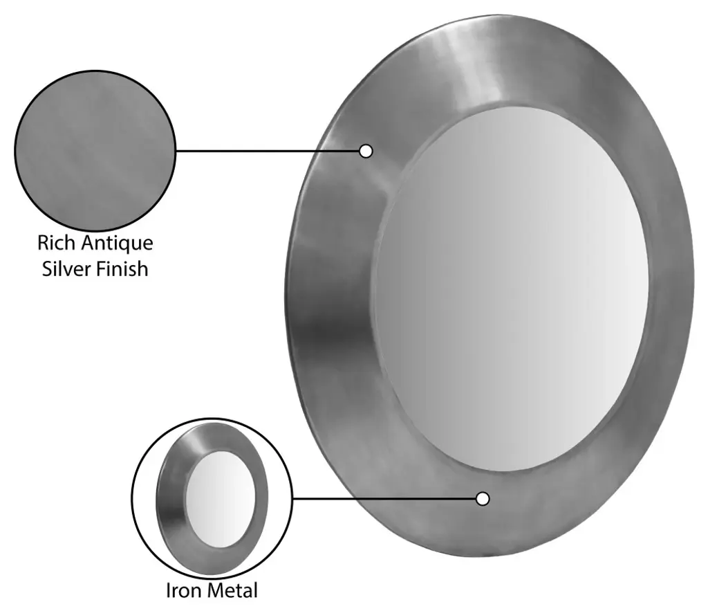 The Sphere silver iron mirror is the perfect blend of industrial chic and modern design. Its raw, rich antique silver iron frame and circular shape add a touch of edgy elegance to any room. A simple, yet striking design and durable frame make it a versatile and long-lasting piece.Overall Product Dimensions: 36" W x 2" D x 36" HRich Antique Silver FinishIron MetalContemporary Design