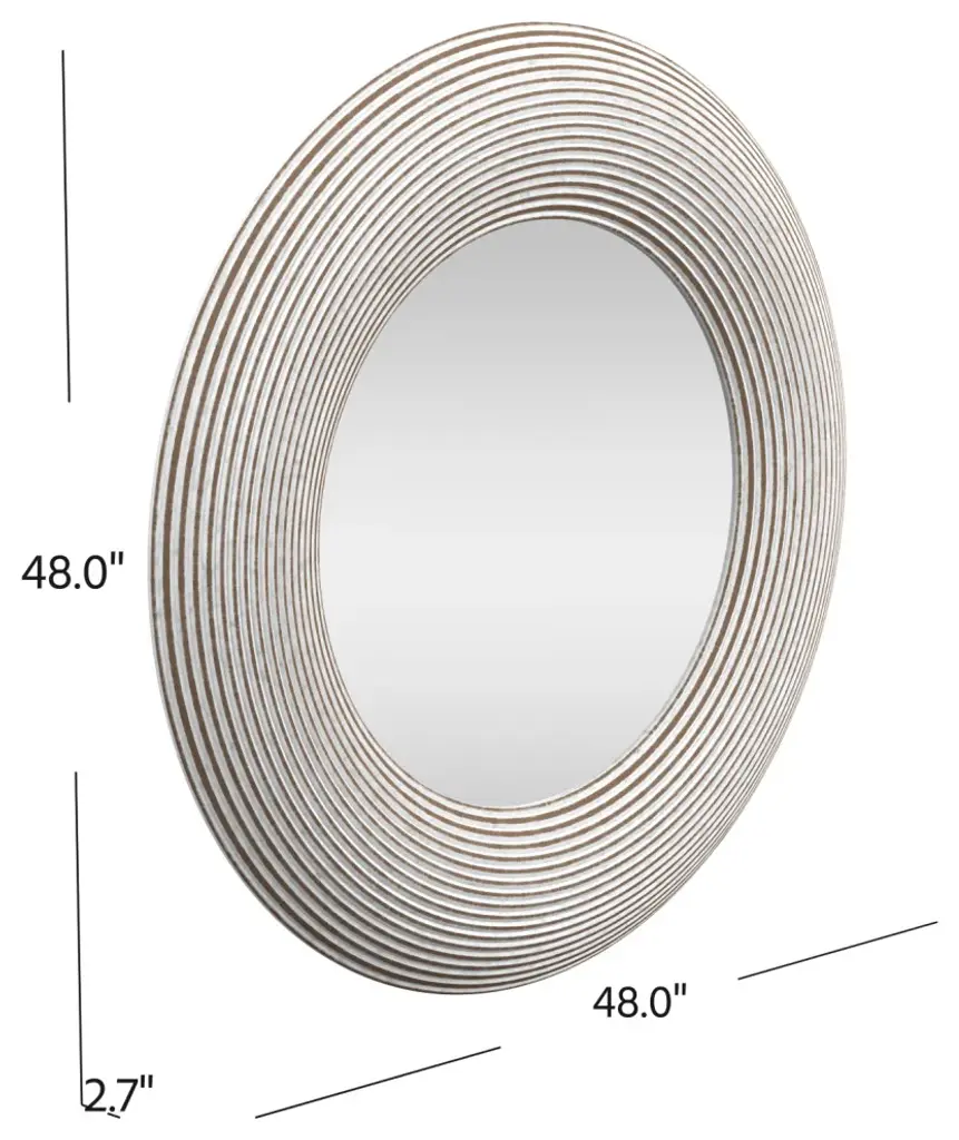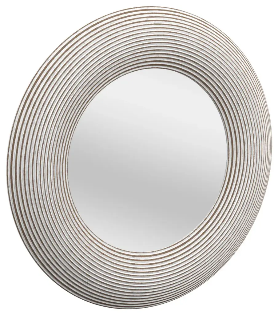 Spin Wall Mirror is a round decorative wall mirror. The wood mirror frame features a white wash finish. Includes two "D" ring attachment points for ease of access for hanging.Features:This wall mirror features rustic stylingFeatures a white frame constructed with woodNo assemblyFor over a century, Bassett Mirror has been synonymous with style and quality, transforming homes with its sophisticated and timeless designs. With a wide-ranging collection of furniture, lighting, mirrors, and art, Bassett Mirror seamlessly blends modern style with classic appeal. From rustic modern to luxe glam, each piece is thoughtfully crafted to inspire and elevate any space. Committed to exceptional value and customer care, Bassett Mirror makes it easy for homeowners to create beautiful, personalized interiors with confidence.