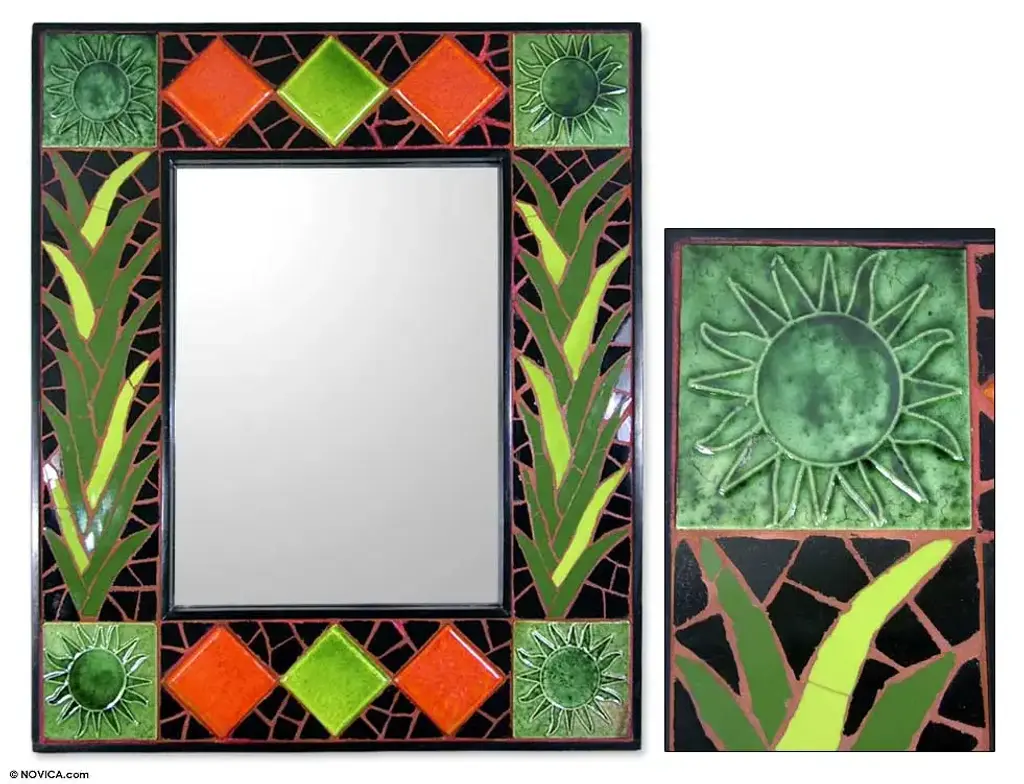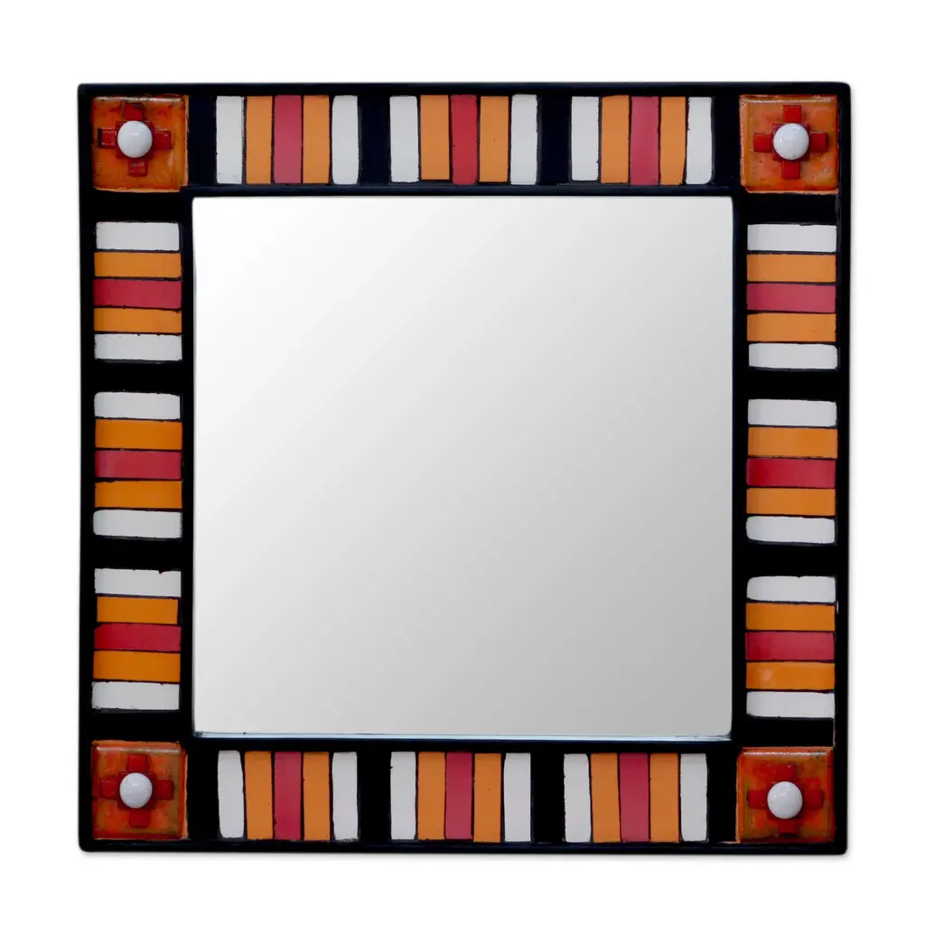 Square Wall Mirror And Frame Artisan Crafted Ceramic- Sunshine Reflection