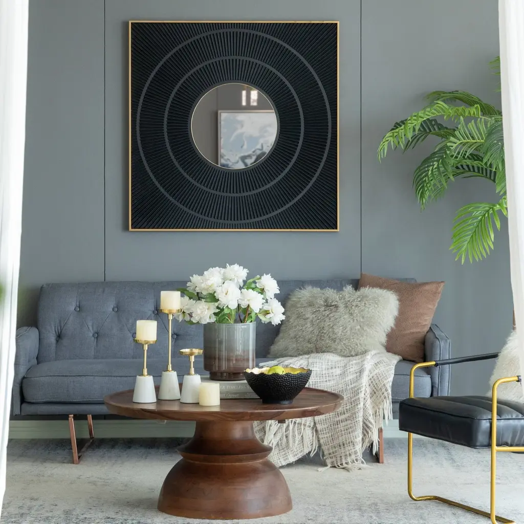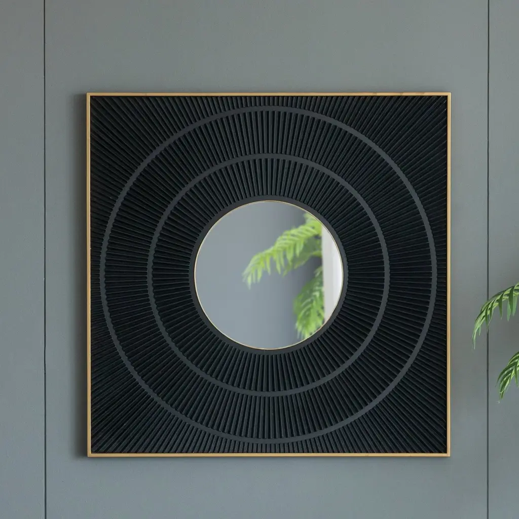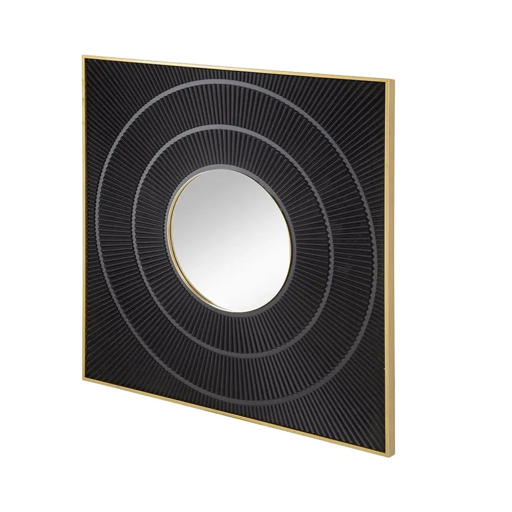 Unveil a touch of elegance with this square carved mirror, featuring a unique pleated design that enhances any wall. The sturdy iron frame provides a modern, durable structure that complements your decor. High-quality glass ensures a clear reflection, while reliable protection maintains its pristine look. This striking piece serves as both a functional mirror and a stylish wall accent for any room. 40" x 40"