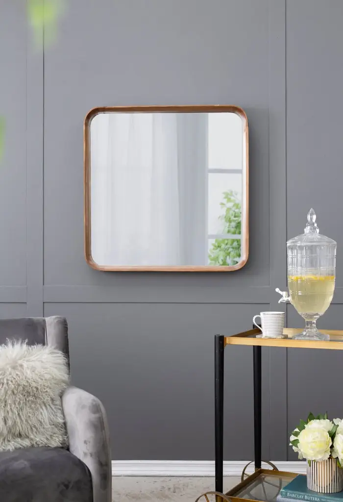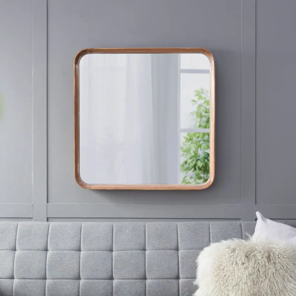 Elevate your space with this square mirror, featuring a minimalist style and clean silhouette. Its simple design seamlessly blends with other wooden home decor, adding a touch of sophistication to any room. The mirror enhances your interior by reflecting light and creating a more spacious feel. Perfect for those who appreciate understated elegance, this mirror complements a variety of decor styles. 32" x 32"