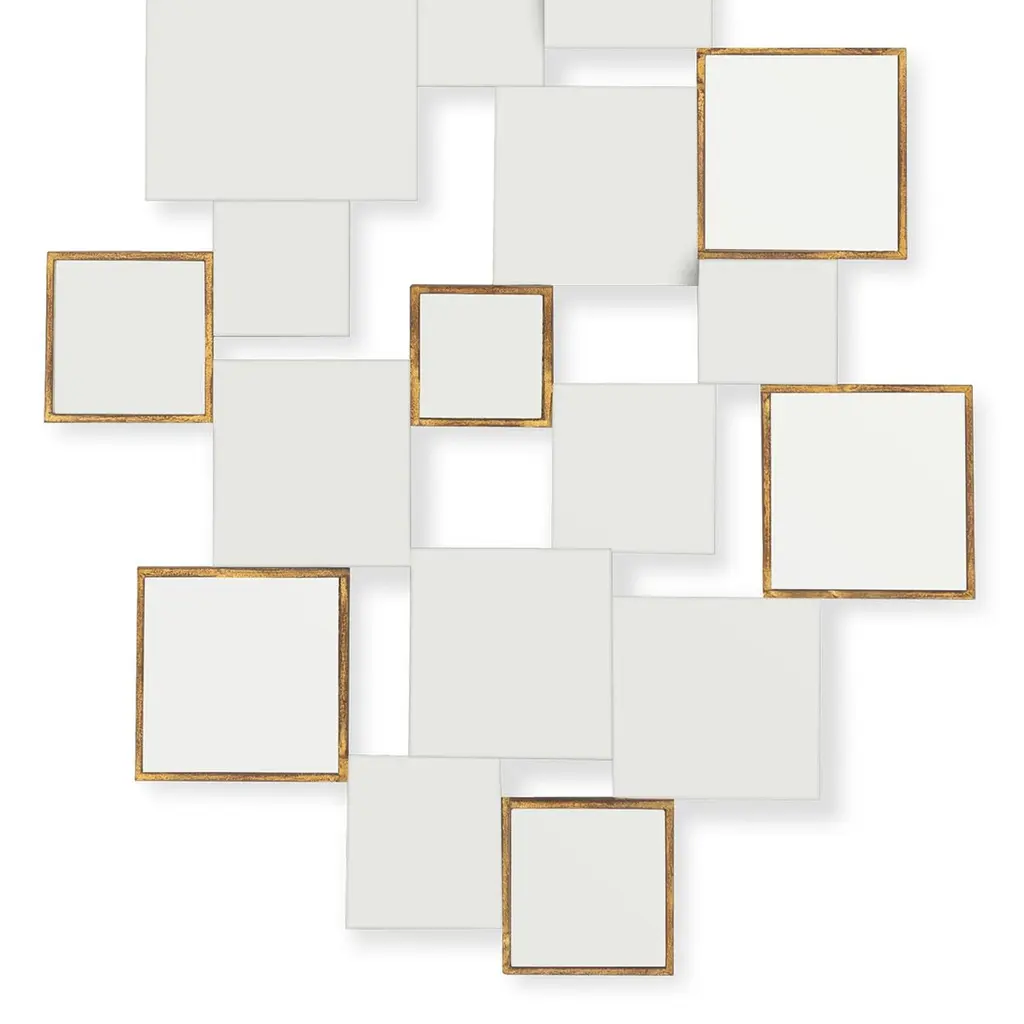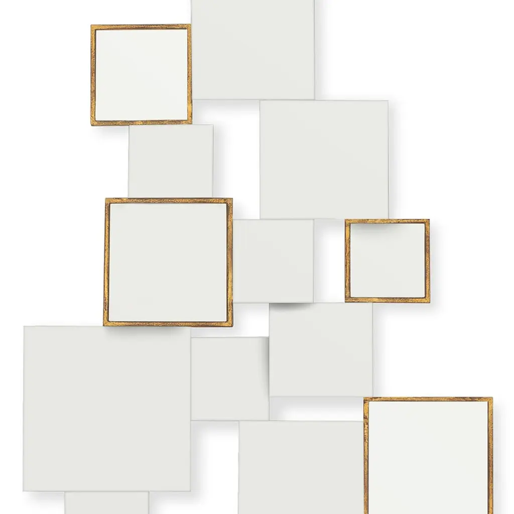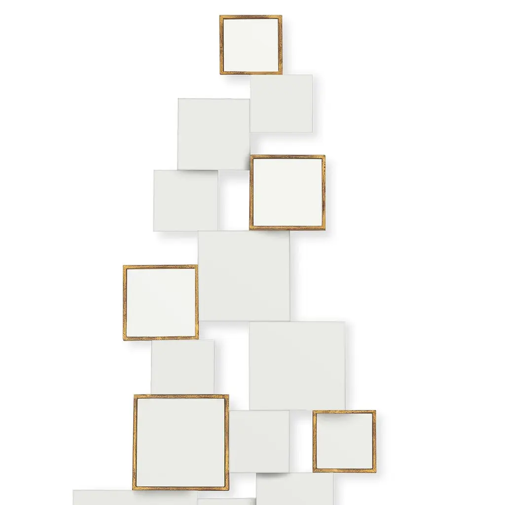 Mirror squares concept II with squares mirrorglass with polished edges and with squares mirrorglass with solid wood frames painted in antiquegold finish.Available on request in:L 57 x D 3 x H 130cm, price: 5900,00€L 68 x D 3 x H 155cm, price: 6900,00€L 82 x D 3 x H 186cm, price: 7900,00€.