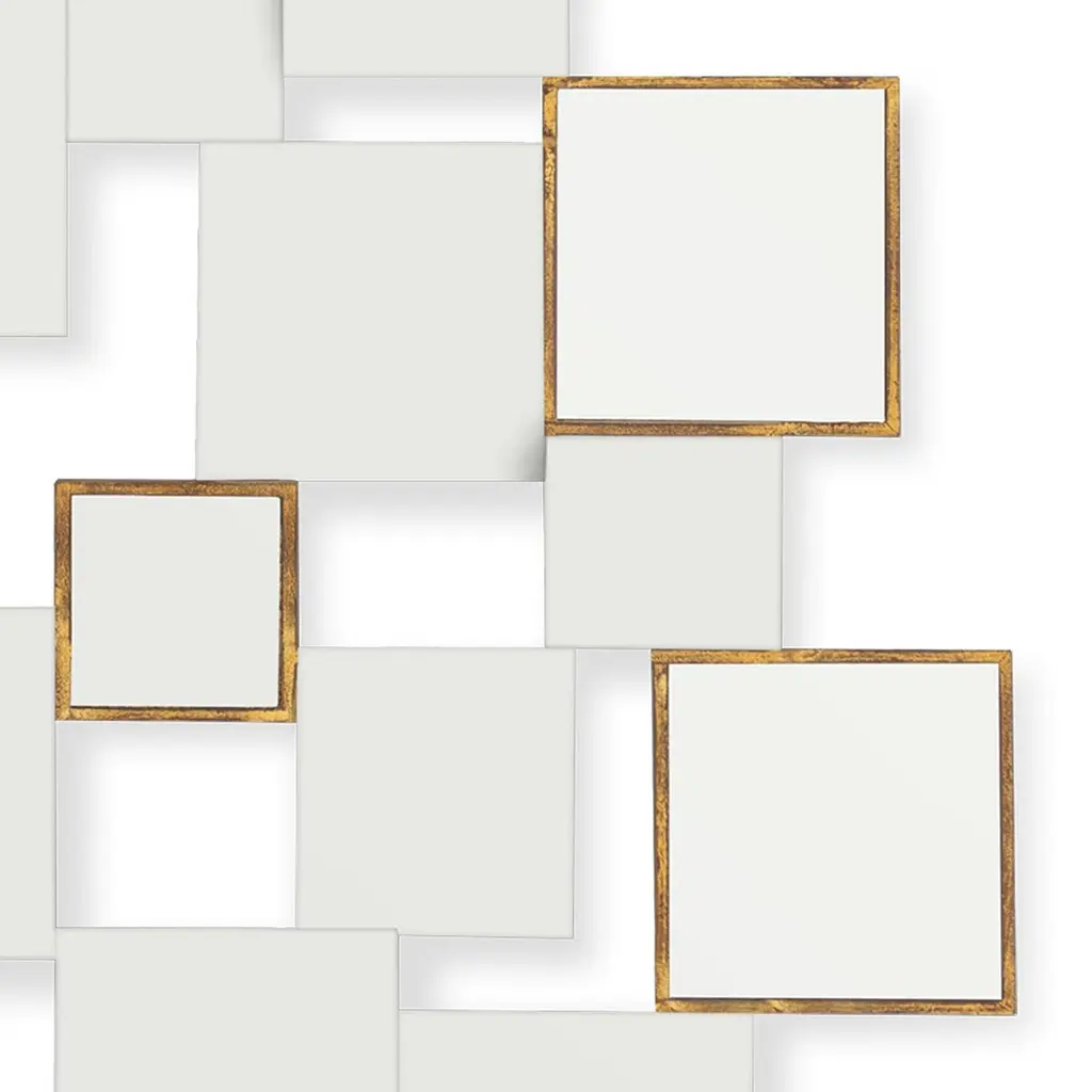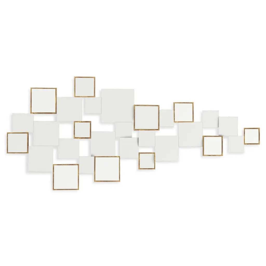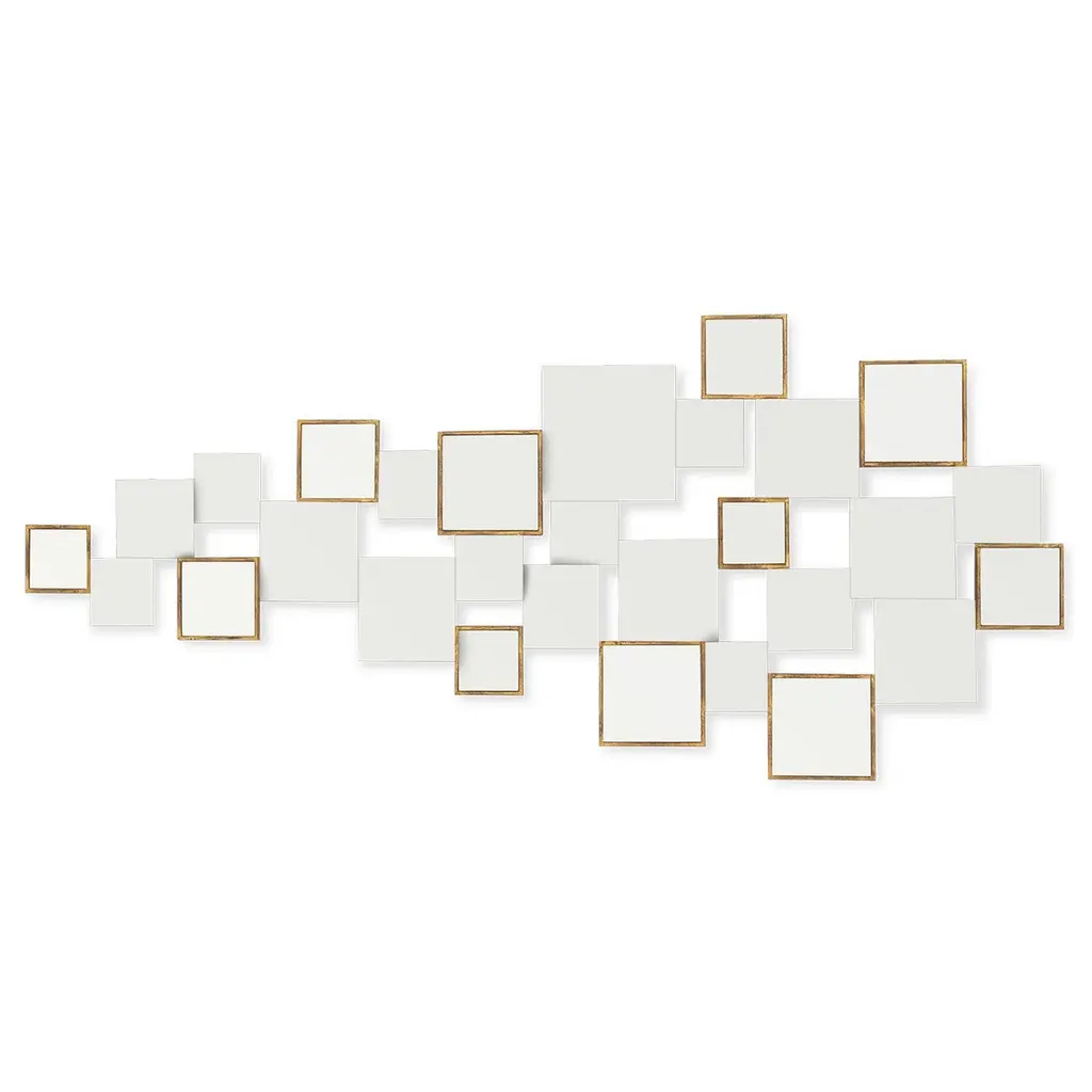 Mirror squares concept II with squares mirrorglass with polished edges and with squares mirrorglass with solid wood frames painted in antiquegold finish.Available on request in:L 57 x D 3 x H 130cm, price: 5900,00€L 68 x D 3 x H 155cm, price: 6900,00€L 82 x D 3 x H 186cm, price: 7900,00€.