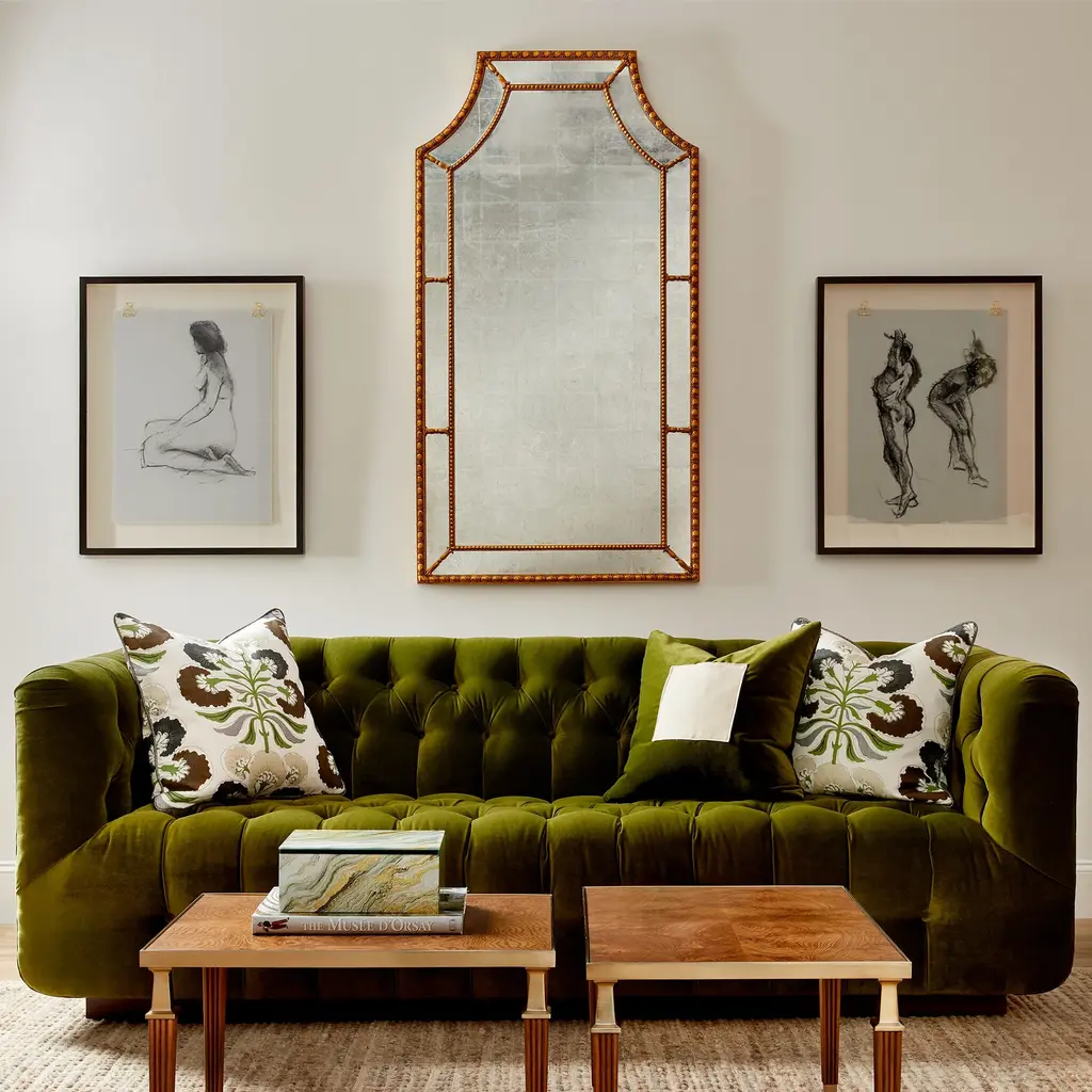 Vintage Gold finish with eglomise mirrored panel border and antique mirrored glass. Ships In 4-5 Weeks Vintage gold finish Eglomise mirrored paneling This image is for illustrative purposes only. The colors shown are accurate within the constraints of lighting, photography, and the color accuracy of your screen.