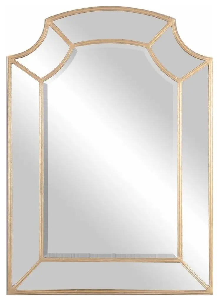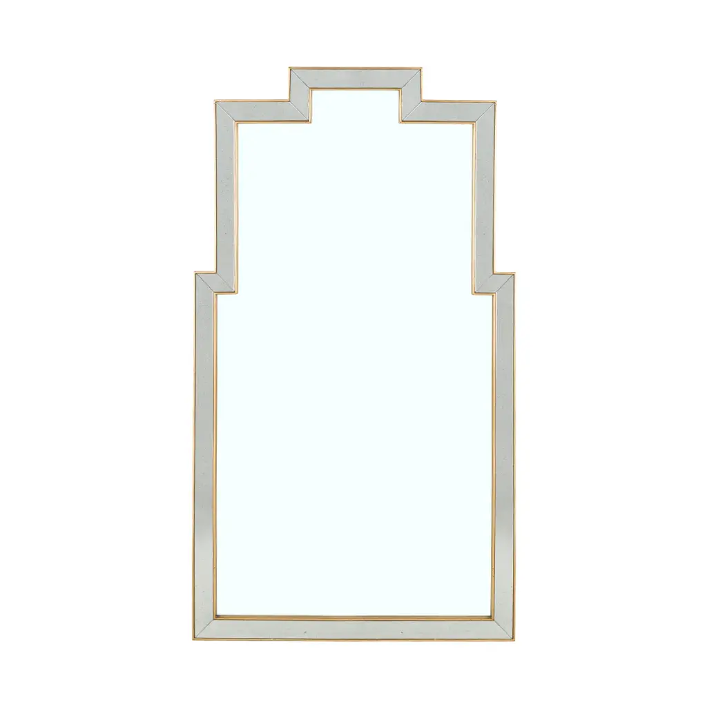 Vintage Gold finish with eglomise mirrored panel border and antique mirrored glass. Ships In 4-5 Weeks Vintage gold finish Eglomise mirrored paneling This image is for illustrative purposes only. The colors shown are accurate within the constraints of lighting, photography, and the color accuracy of your screen.