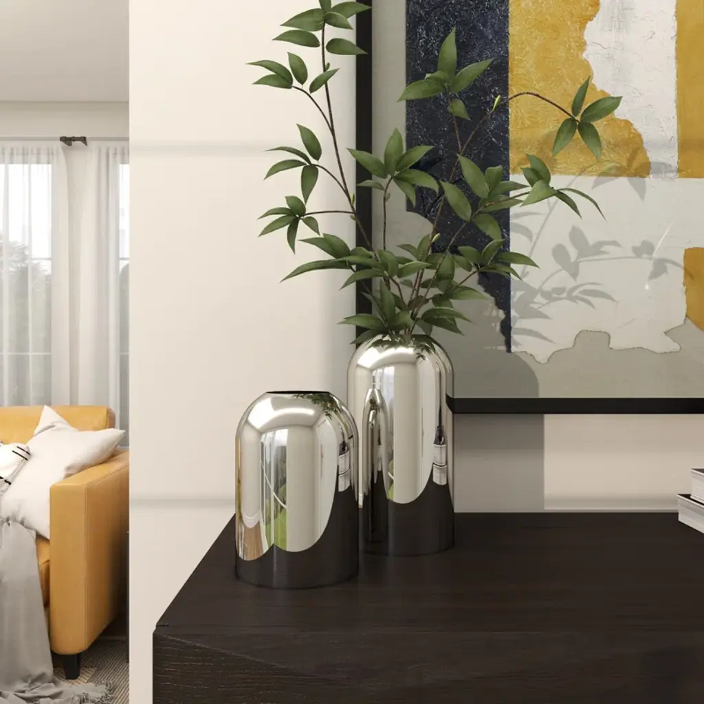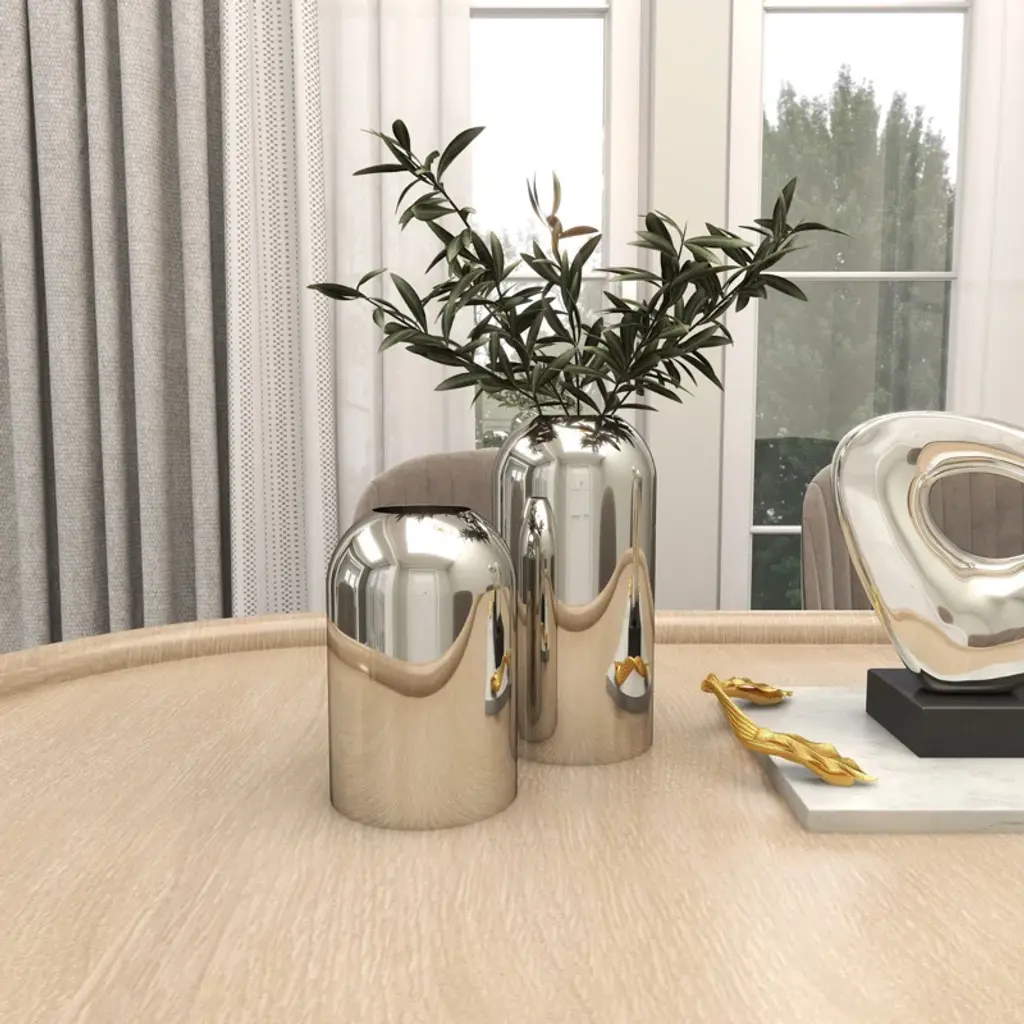Stainless Steel Metal Decorative Silver Vase With A Sleek Mirror Finish Set