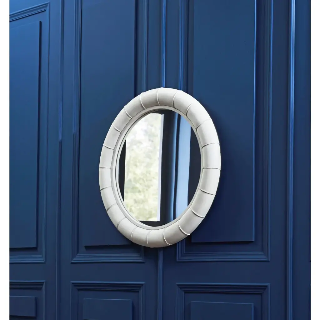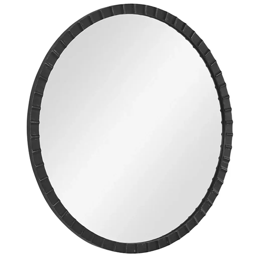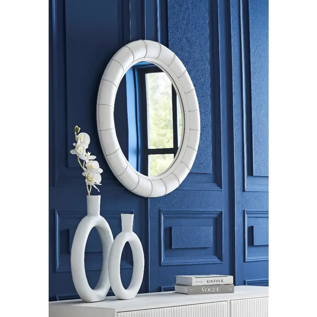 Designed with a refreshing aesthetic, this black leather framed round wall mirror will elevate your style. Mount in a powder room, bedroom, or entry way for an inviting first impressions.