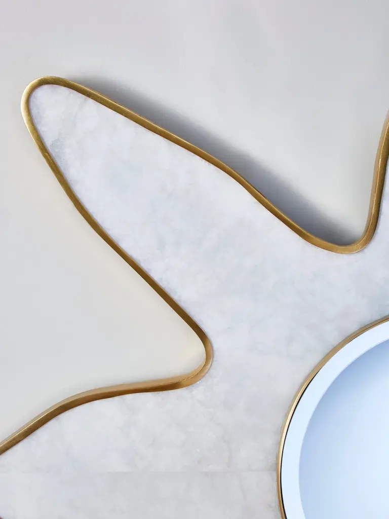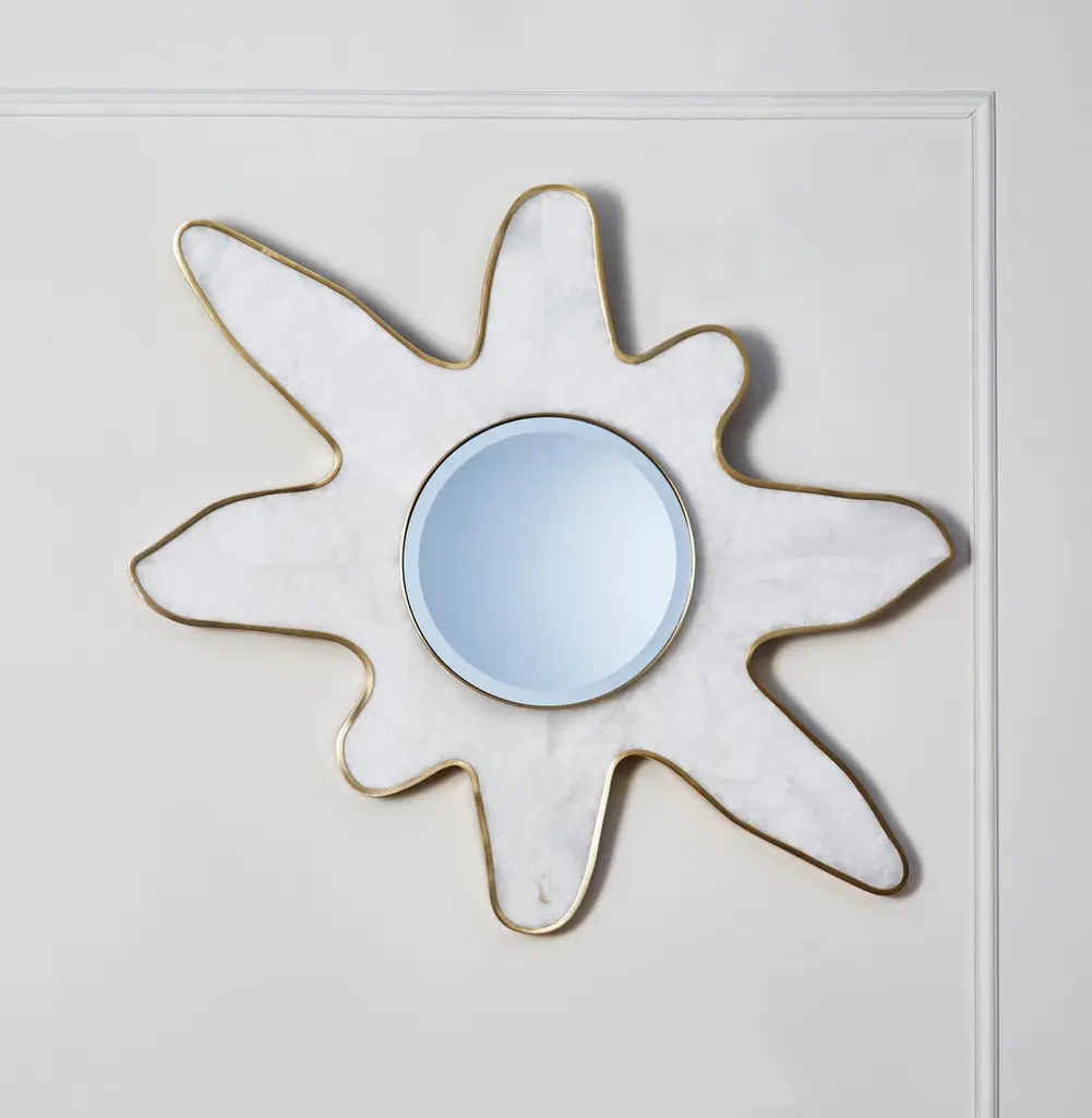 Elegant "Starburst" mirror in alabaster and brass by Studio Glustin.
