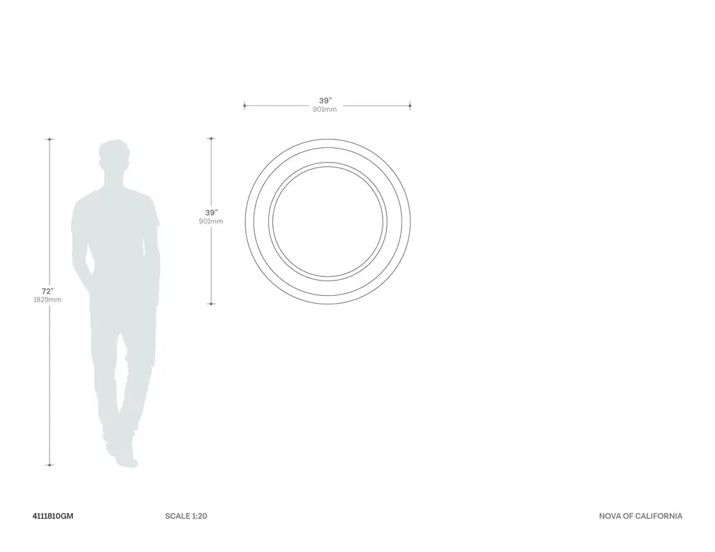 Starfall Infinity Wall Mirror is a fully functional mirror, a beautiful work of art and a warm light source on your wall. With its oversized 39"" size, it's the perfect fit for placing over sofas and sectionals, adding multifunctional décor to any wall. The large circle of bulbs surrounding the mirror creates a mesmerizing illusion of never-ending light. The mirrored center elegantly reflects the user and adds perceived space to a room, enhancing the experience with the radiant circle of light around it. Its gunmetal frame complements modern, transitional, and mid-century decors, adding a touch of sophistication to any space. Additionally, the Starfall Infinity Mirror is designed with modern convenience in mind, and is Smart switch compatible, allowing the mirror to be turned on/off manually, by voice activation, or by scheduled settings. * The Starfall Infinity Wall Mirror is a stunning combination of functionality and artistry. * With its generous 39"" dia. size, this mirror is perfectly suited for placement over sofas and sectionals. * The large circle of bulbs surrounding the mirror creates a mesmerizing illusion of infinite light. * The traditional mirrored center beautifully reflects the user's image, enhanced by the radiant circle of light around it. * The mirror's gunmetal frame imparts a modern and sophisticated touch that complements various décor styles. * Smart switch compatible - effortlessly sync with Amazon Echo, Google Assistant, and Apple Home for easy & automated control. * Contract grade: high quality materials, quality workmanship, built to last a lifetime & designed in Venice Beach, California. * NOVA of California is the oldest light company in North America and has been making original contemporary designs for 100 years. * Sustainability statement: We are committed to minimizing the unwanted impact our business has on the environment. We care for our planet. * Product Designer: Jon Gilmore, 1977. * Manufactured from Glass and Gunmetal Finish. * Authentic mid-century modern design by the oldest lighting company in America. * Our artistic background, mid-century modern legacy, and passion for design make our handmade lighting designs timeless,functional and elegant.