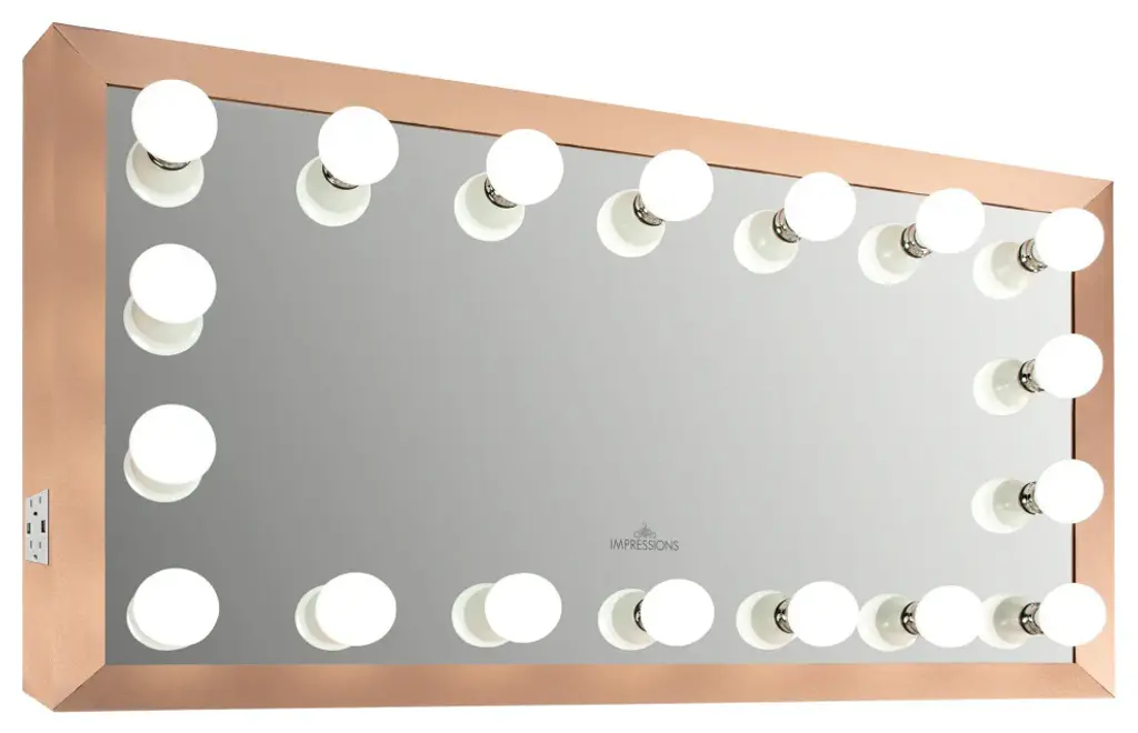 Impressions Vanity Bold and brilliant, this thick metal frame brings a stunning style to any home and is a statement piece for any room. Take home the ultimate Hollywood backstage experience and bring out your inner glamorous celebrity on the daily with the amazing Impressions Vanity Starlight Wide Vanity Mirror. Mounted horizontally, this pronounced piece measures 51 inches wide creating an illusion of a larger space for your home. The modern and elegant design elements allow this mirror to blend with a variety of styles. Perfect for bedroom, dressing room, studio, makeup room, barbershop, etc.Features:REFLECTIVE ILLUMINATION: Illuminate your face with 18 Froster LED Globe Bulbs encased in silver glossy holders, casting a cool white light on the LED makeup mirrors surface for the perfect makeup applicationCHARGING HUB: Stay connected and charged while getting ready with the integrated 2 slot 5V USB port and 2 TR plugs located beside the lighted vanity mirror frame, ensuring your devices are within reachPREMIUM CONSTRUCTIONS: Transform your daily makeup routine into a star studded affair with our vanity mirror with lights stunning rectangular design, featuring a premium metal frame that exudes eleganceGLAMOROUS STYLE: Experience the ultimate Hollywood backstage feel every day as you indulge in the luxurious ambiance and embrace your inner glamorous celebrity with this exquisite LED mirror vanity