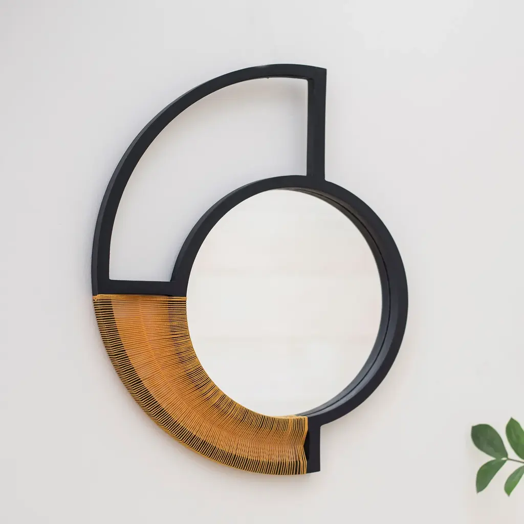 The hand woven yellow wall mirror is a striking accent piece crafted using traditional African weaving techniques. Featuring a wooden mirror frame with smooth curves and sharp lines, it’s finished with colored wax cord and high-quality glass for a clear, crisp reflection. Available in small and large sizes, it fits effortlessly into a variety of interior styles. Ideal for the living room, bedroom, kitchen, entryway, hallway, dining room, foyer, powder room, family room, or lounge room, this wall wooden mirror is easy to hang with two built-in brackets., Serves as a bright statement, especially as a yellow wall mirror in vibrant spaces., Adds warmth and artisan detail as a textured wall wooden mirror in any room. , Enhances both residential and commercial interiors with a functional and artistic wooden mirror.