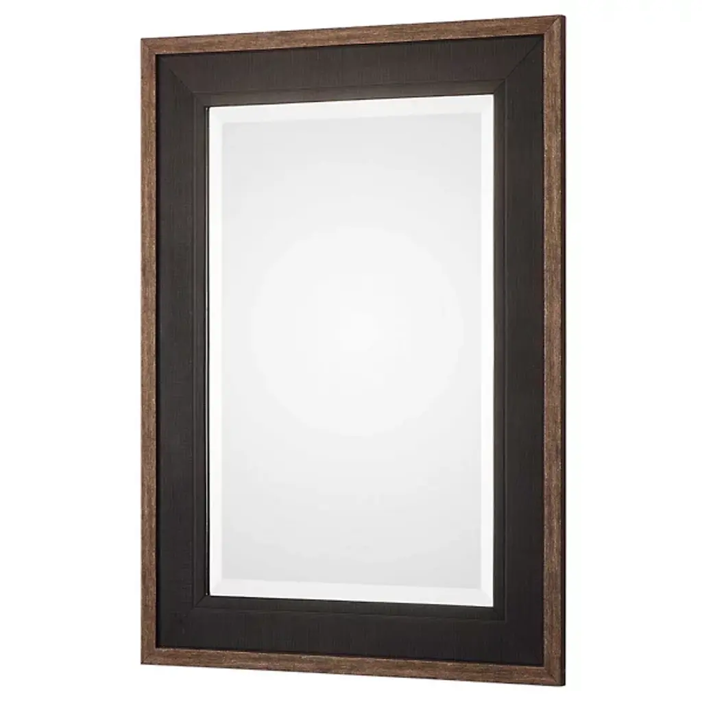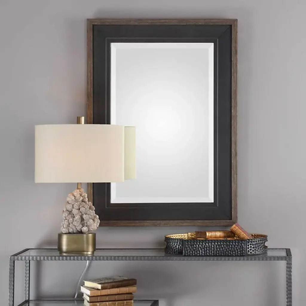 The Staveley Mirror from Uttermost presents a bold texture through its distinctive mesh-patterned frame. The solid pine construction undergoes multiple finishing processes to achieve its unique surface character. The outer edge treatment adds another layer of detail to the design. This versatile mirror, crafted by David Frisch, adapts to both vertical and horizontal orientations, making it perfect for transitional and rustic modern spaces like lobbies or dining areas where its textural elements can be appreciated up close.