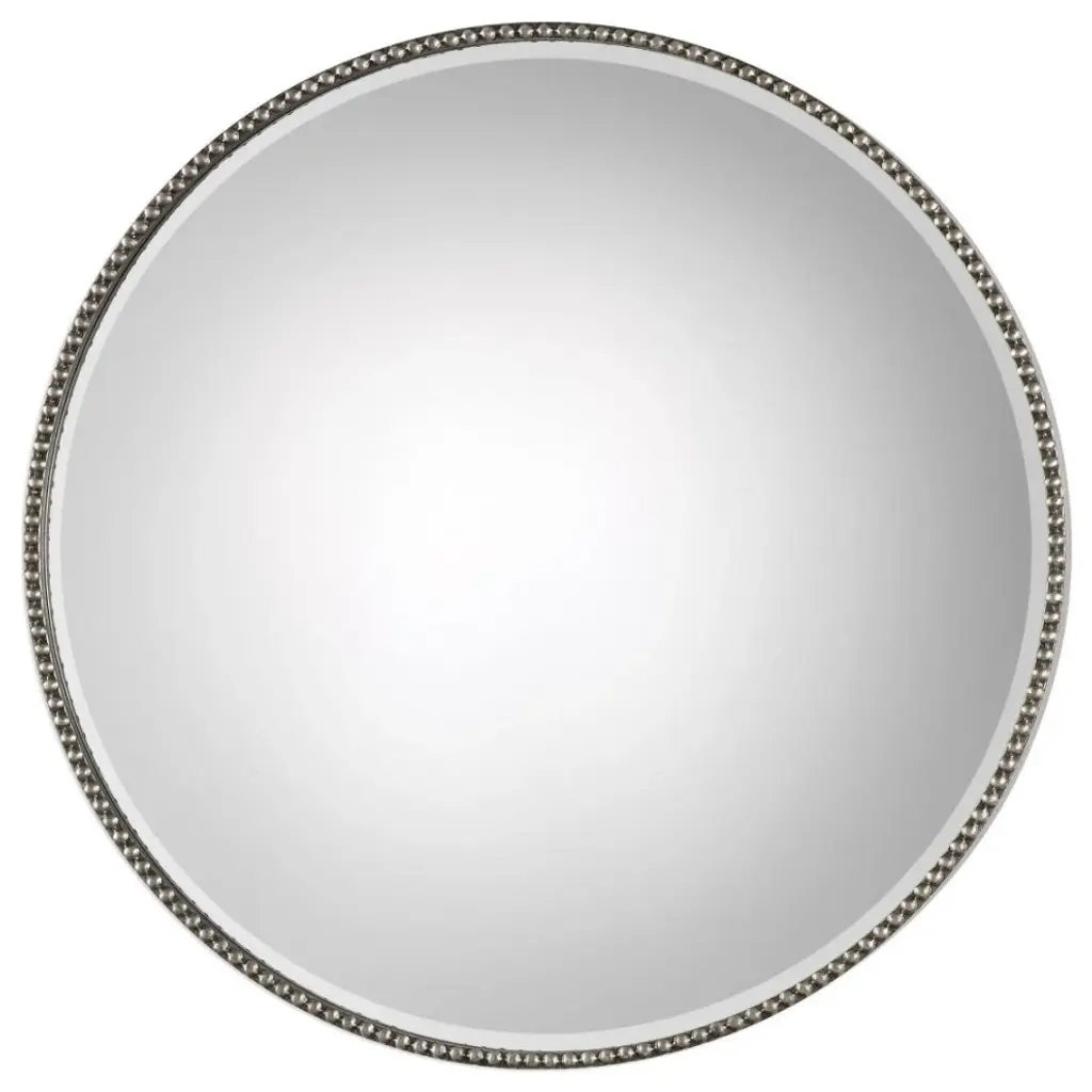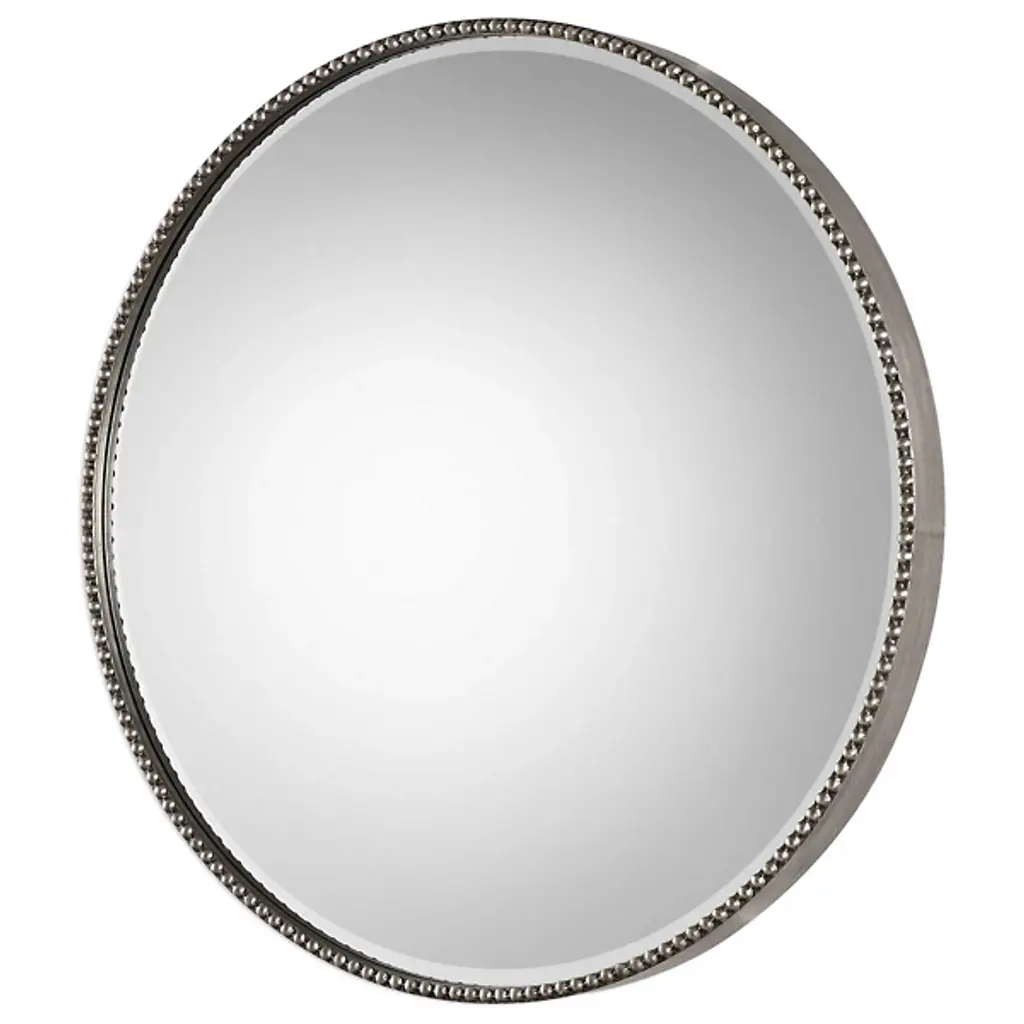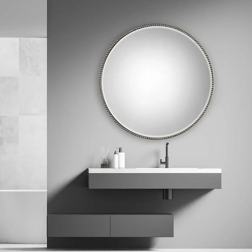 The Stefania Beaded Round Mirror from Uttermost, conceived by Grace Feyock, proves that small details make a substantial impact. Each bead in the iron frame is individually crafted, creating a pulsing pattern that encircles the beveled mirror surface. The deep profile adds dimensional interest to the circular design. This artisanal modern mirror becomes a natural choice for intimate spaces like powder rooms or bedroom walls, where its intricate detailing can be fully appreciated.