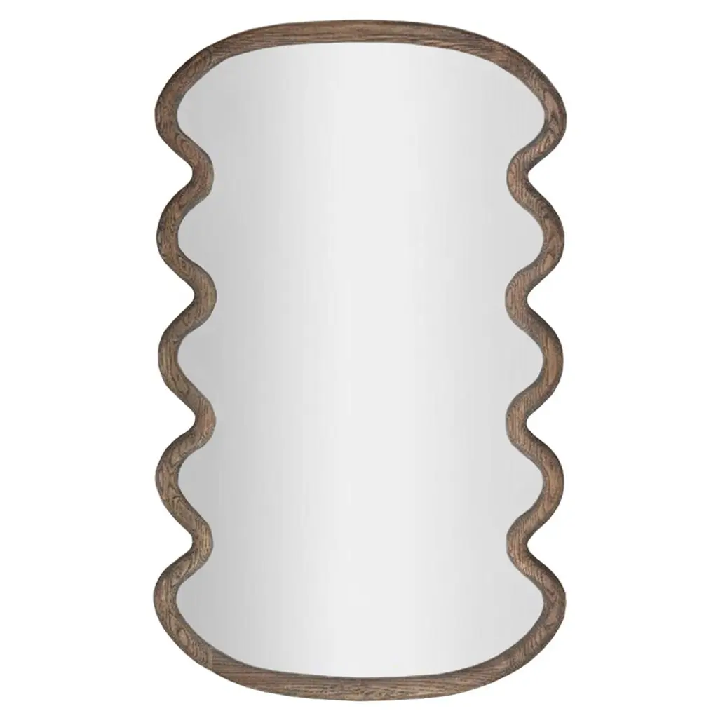 Stella Global Bazaar Grey Wood Frame Oval Wavy Wall Mirror