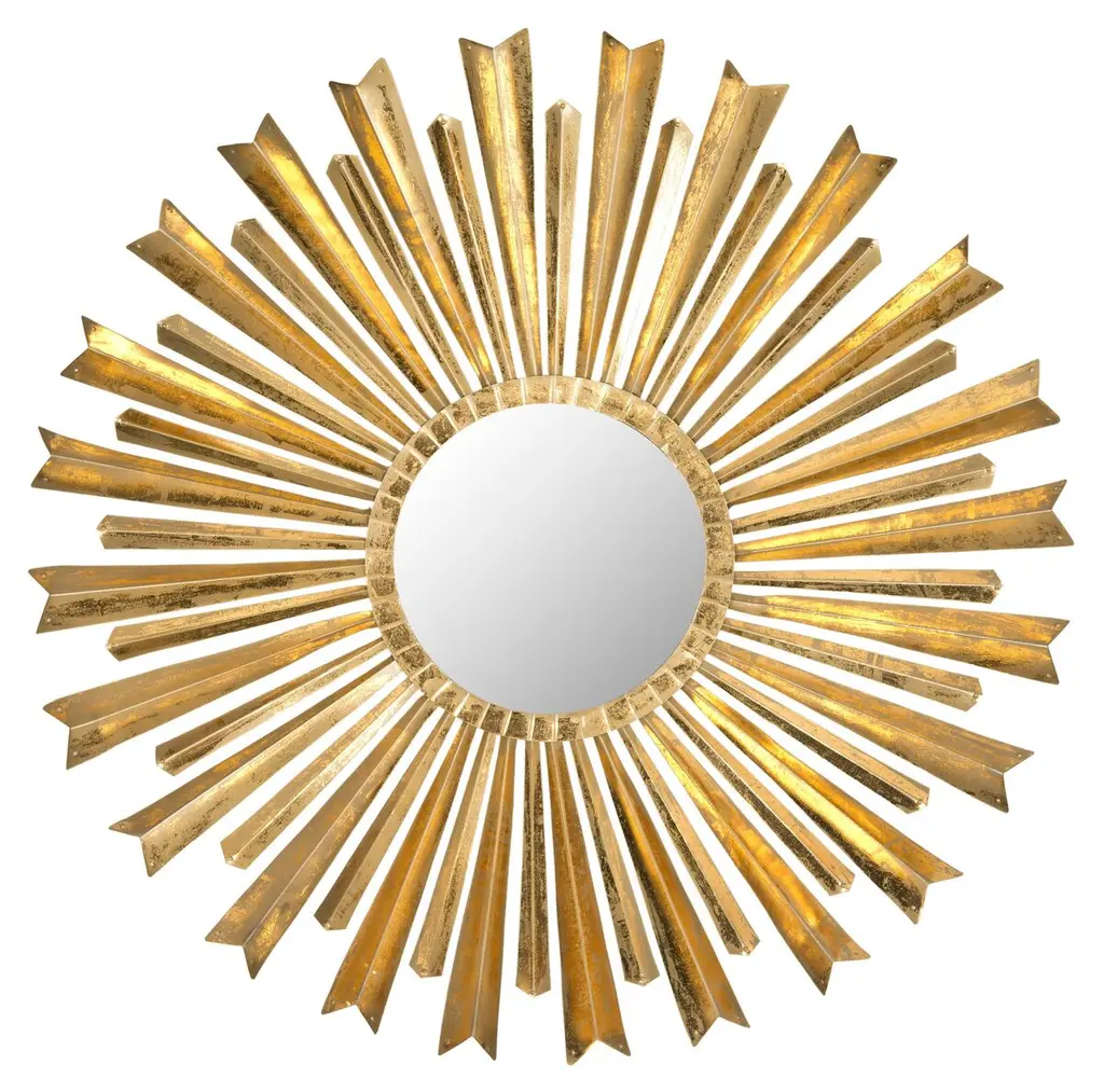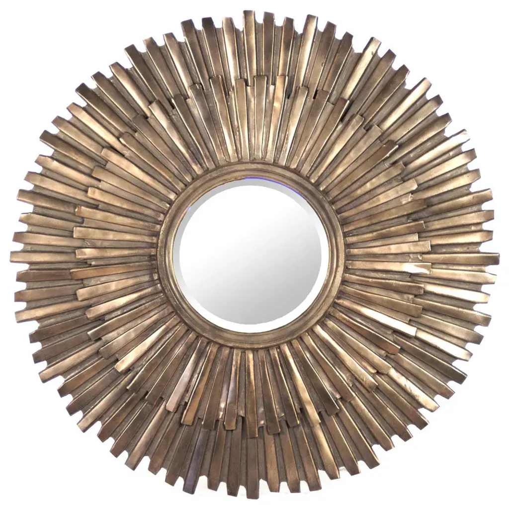 Add a striking accent piece to your home using the Stella Mirror. Featuring beveled glass and a copper sunburst frame, this round mirror has a bright, eye-catching look. Display it alongside contemporary design pieces for a chic, cohesive feel.