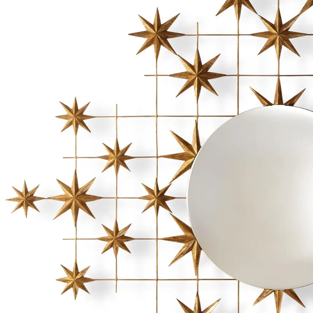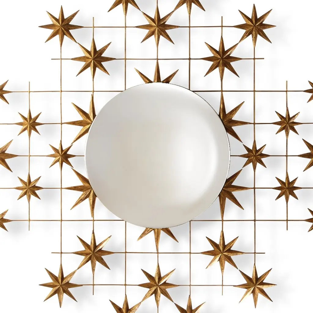 Mirror Stellar with structure in forged ironin antique gold finish. With center convex mirror.Available in :L 119 x D 09 x H 116cm, price: 5900,00€L 149 x D 09 x H 145cm, price: 6900,00€.