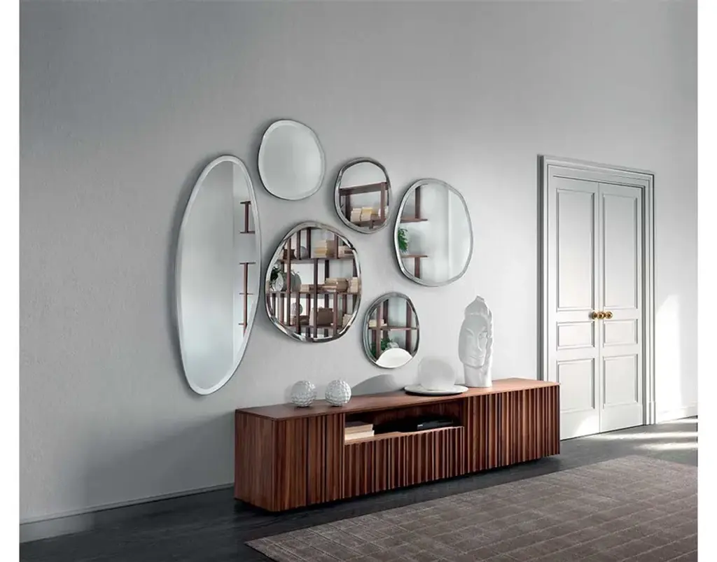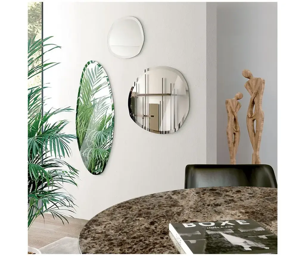 STONE is an irregularly shaped mirror with a hand-beveled edge, available in three sizes.Offered in natural or bronze finish, it is ideal as a standalone piece or arranged in compositions.This accessory is perfect for decorating a living room or bedroom wall—especially when combined in sets of two or more—where the interplay of shapes and sizes creates a striking and highly impactful visual effect.