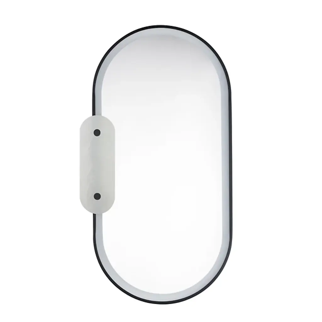 Sleek. Sophisticated. The Stonewall LED Lighted Mirror from Studio M has ultimately transformed an everyday item into a minimalist work of art. An elliptical frame encompasses the glass mirror itself while the integrated, energy-efficient LED lighting gives off a flattering, ambient glow. The steel frame is accented to one side with a smaller elliptical shape. This piece of design would fit well into many interiors, such as a vanity area or over the bathroom sink.