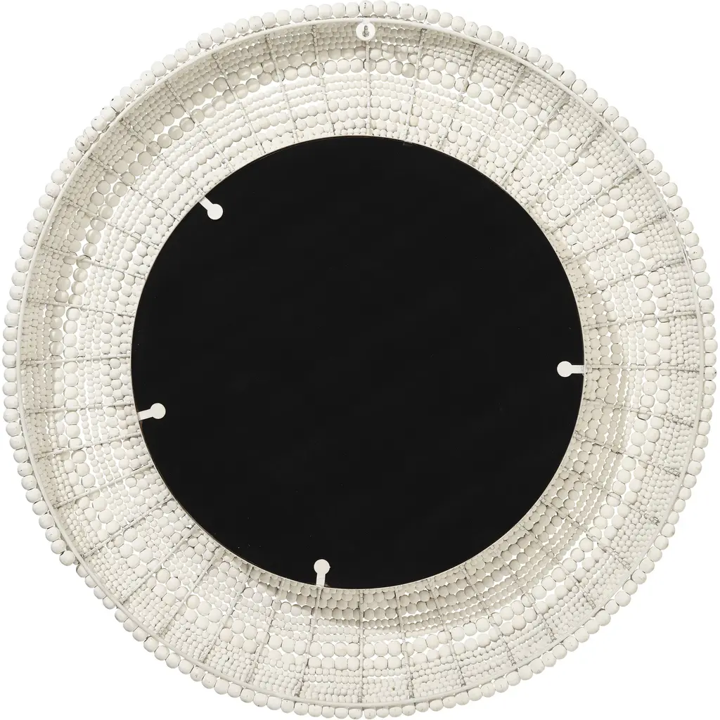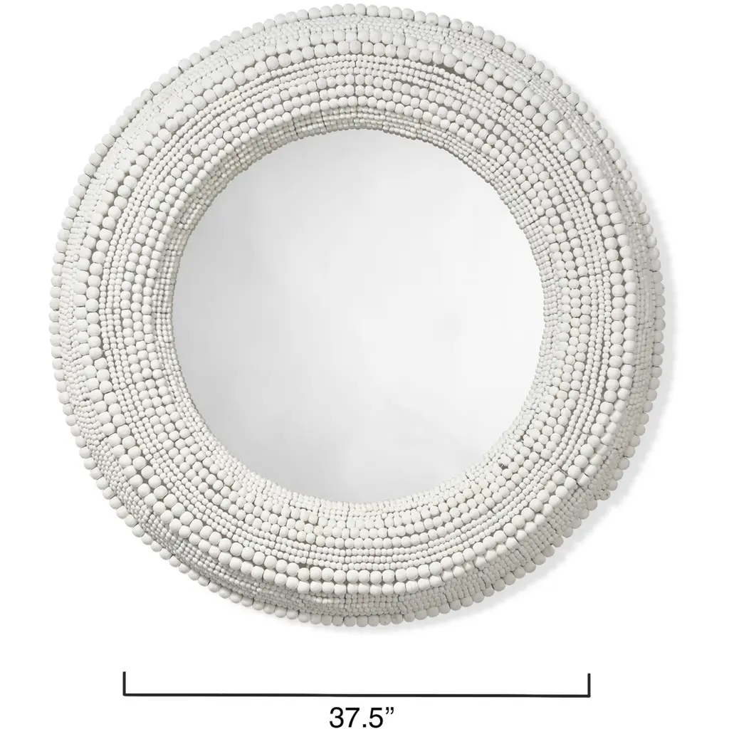 Hundreds of hand carved wood beads are arranged one at a time, by size and shape, to form the glorious frame that surrounds this round wall mirror. As no two beads will be the same, no two mirrors will be identical. Hang several together for an eye-catching display, or place just one within a gallery wall for a reflective counterpoint.