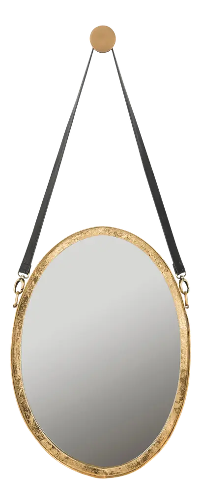 This chic hanging style gets a luxe update from creamy white leather, which covers the mirror's round frame and forms the buckled strap.