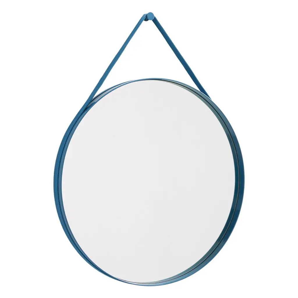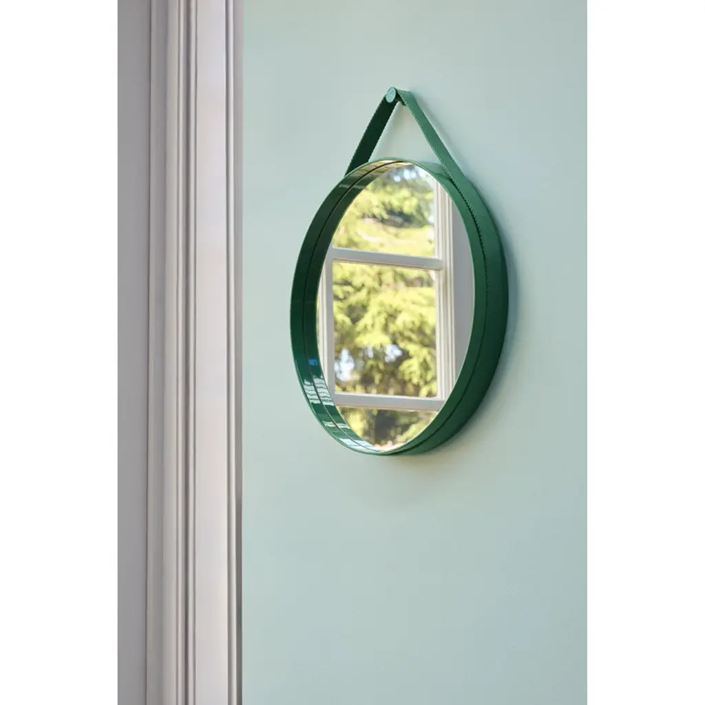 Strap is a playful wall mirror from HAY. The Strap No 2 mirror features a round design with a frame in colorful powder-coated steel. Hanging from a polyester strap in the same color, this modern and minimalist mirror can be adapted to any style and space from the hallway to the bedroom and living room.