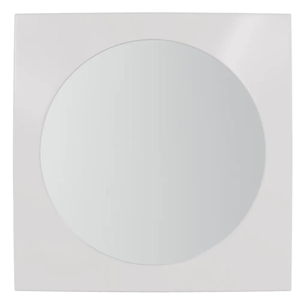 Rectangular mirror with pine frame in L'Ombre finish and non-beveled mirrored glass in a racetrack shape. Rectangular mirror with pine frame in Gris finish and non-beveled mirrored glass in a racetrack shape.