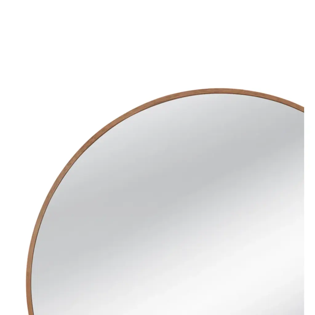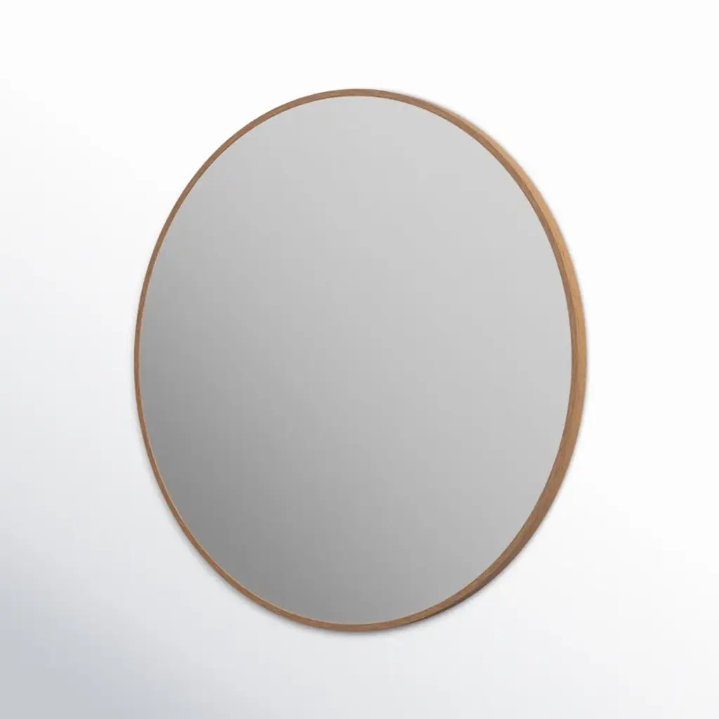 The Strophe round wall mirror is the perfect wall accent for your space. The smooth frame edges around the glass mirror give a classic, timeless look. The wood frame is constructed of pine wood. This mirror hangs easily using the two D-ring attachment points located on the back of the mirror.