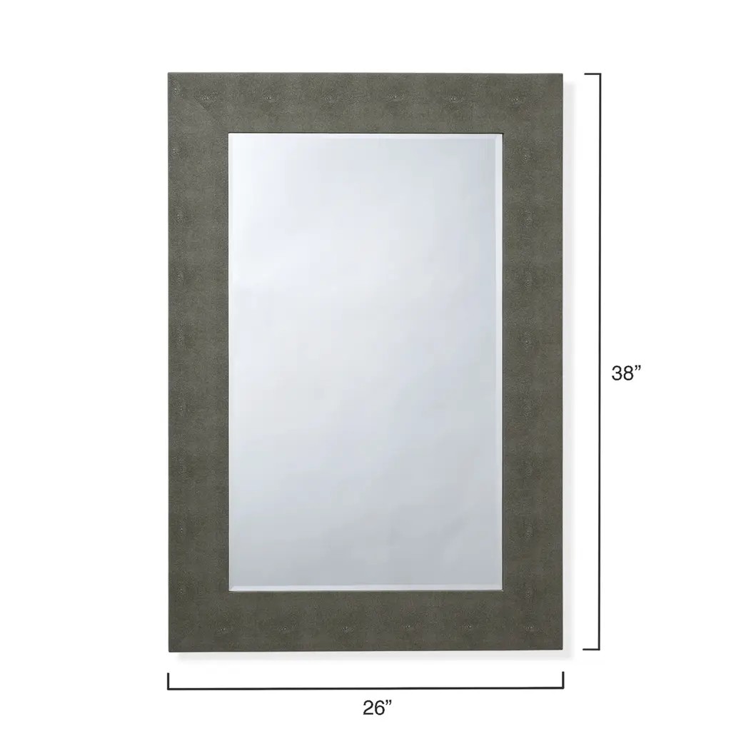 The modern and exotic texture of stingray skin or shagreen has been a favorite of designers since the 30's. Here we've combined faux shagreen with clean lines to create an intriguing contemporary blend. Mounted above a vanity, sideboard, or dresser, this mirror will open up your view and make your space feel bigger. The rectangle mirror is versatile and can be hung both vertically and horizontally.