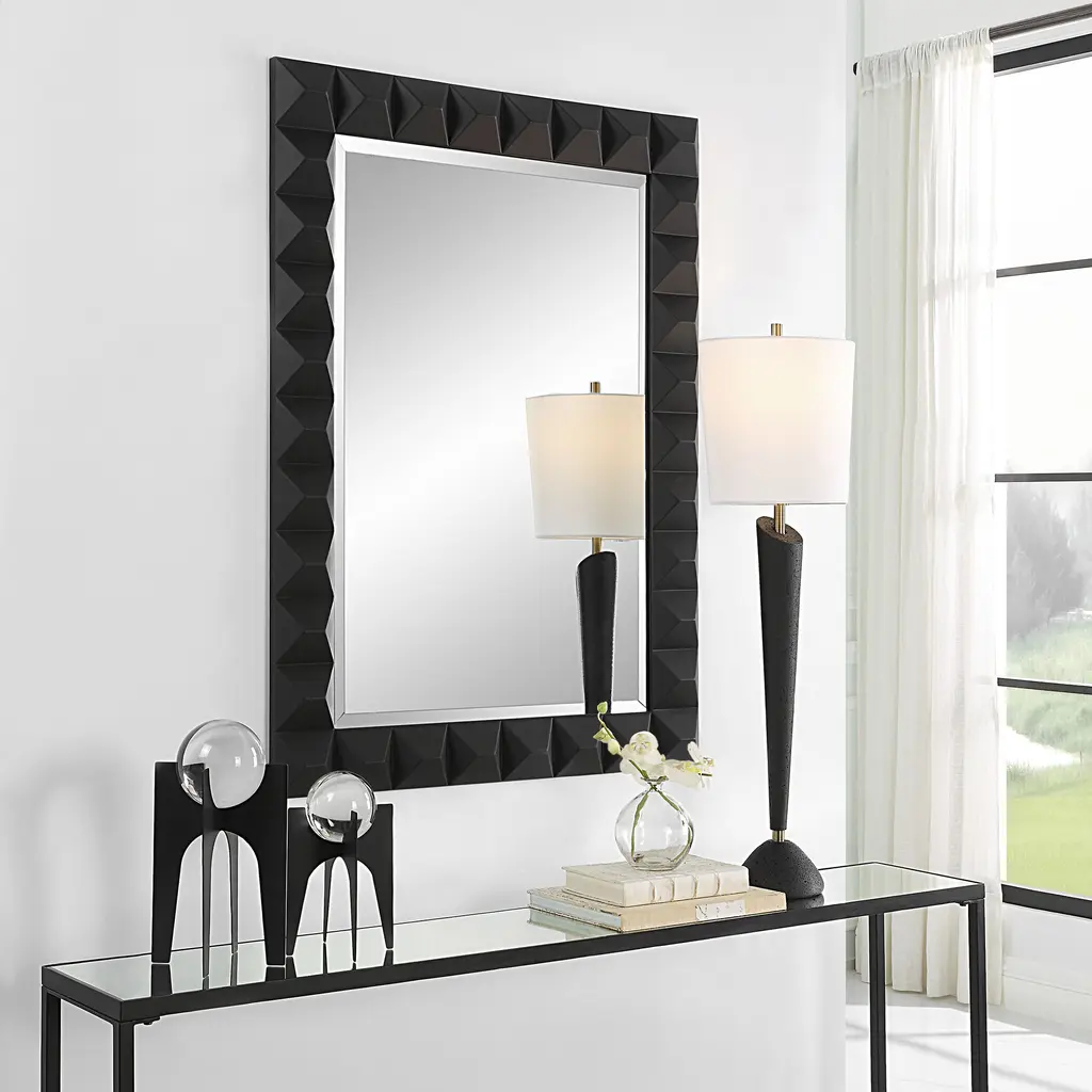 Studded 43.25 X 31.75 Inch Matte Black Mirror