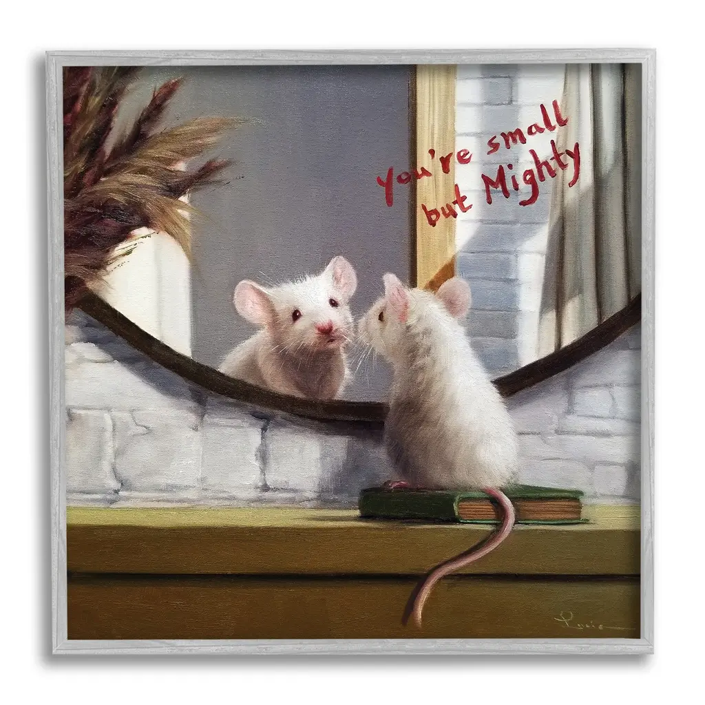 Stupell Small But Mighty Sentiments Adorable Mouse In Mirror Framed Wall Art - 24 X 24 - Black