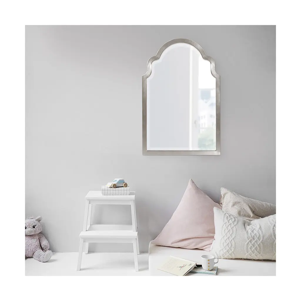 The Sultan Mirror is a gorgeous piece. The wood frame is shaped like a fancy arch way. It is then finished in our glossy silver nickel lacquer. It is a perfect focal point for an entryway, bathroom, bedroom or any room in your home. D-rings are affixed to the back of the mirror so it is ready to hang right out of the box! The mirror on this piece is beveled adding to its style and beauty. The Sultan Mirror is part of our custom paint program and is available in one of fourteen vivid colors. It is proudly painted in the USA.