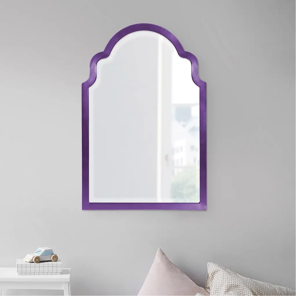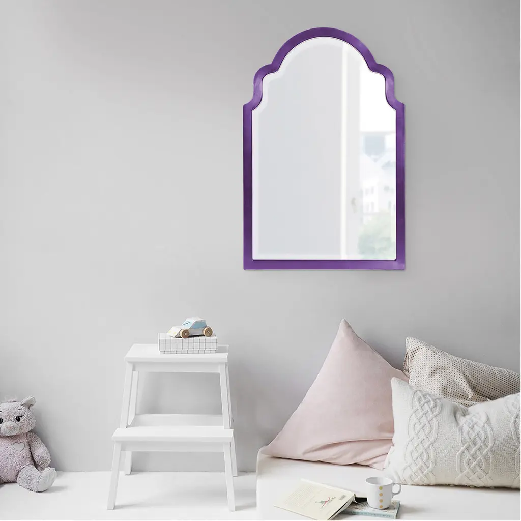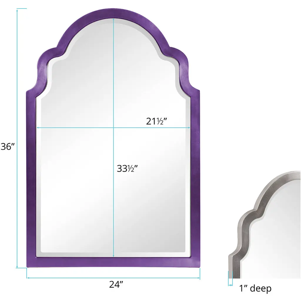 The Sultan Mirror is a gorgeous piece. The wood frame is shaped like a fancy arch way. It is then finished in our glossy royal purple lacquer. It is a perfect focal point for an entryway, bathroom, bedroom or any room in your home. D-rings are affixed to the back of the mirror so it is ready to hang right out of the box! The mirror on this piece is beveled adding to its style and beauty. The Sultan Mirror is part of our custom paint program and is available in one of fourteen vivid colors. It is proudly painted in the USA.