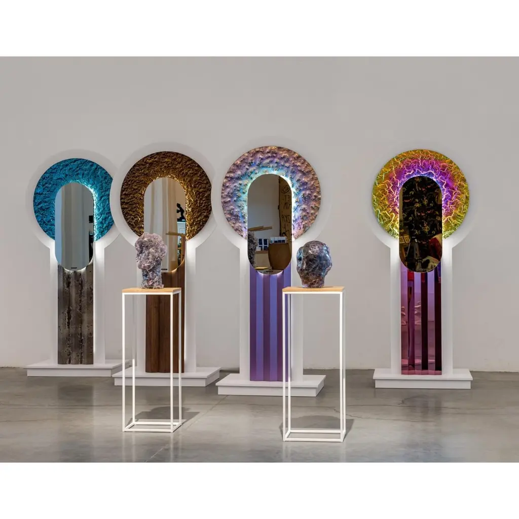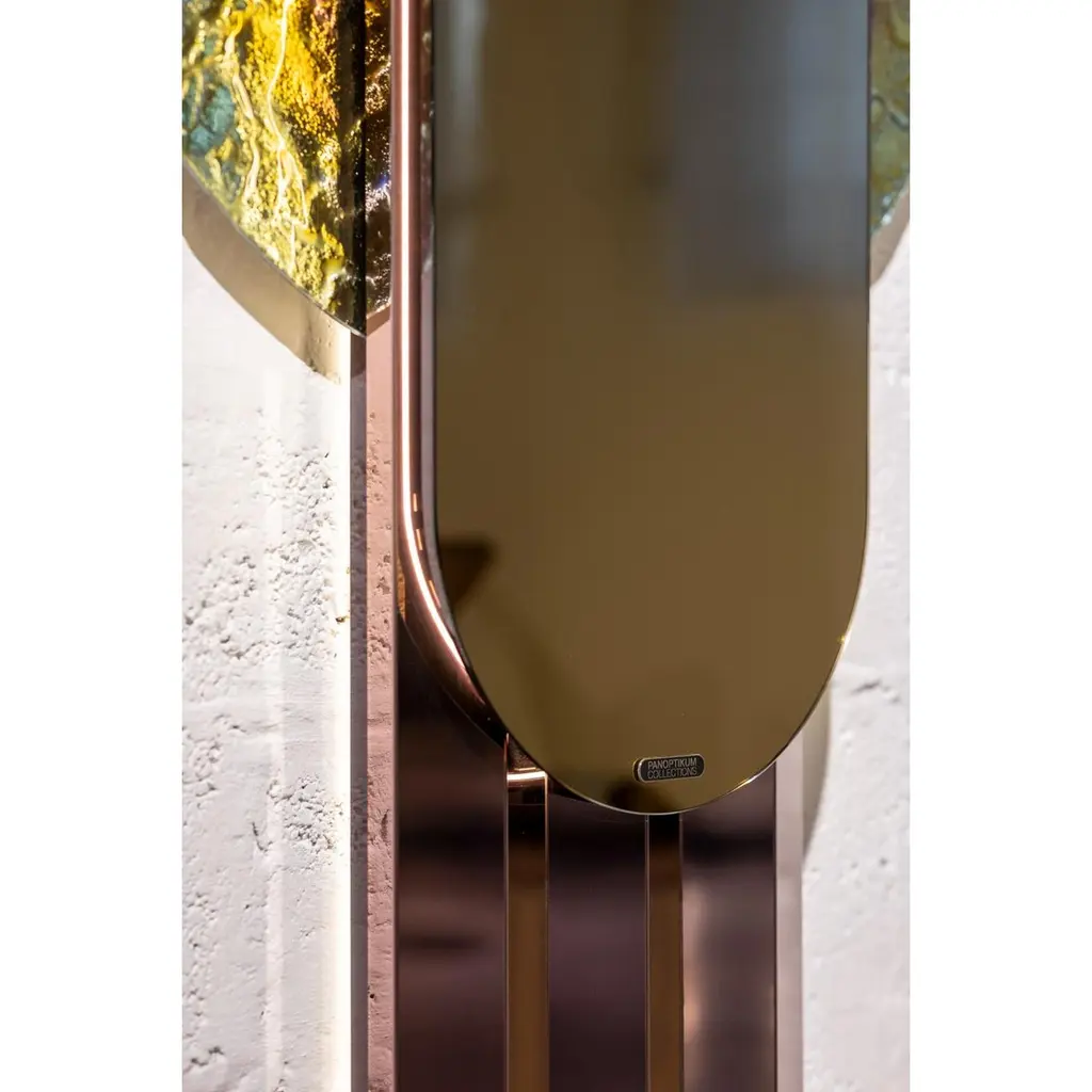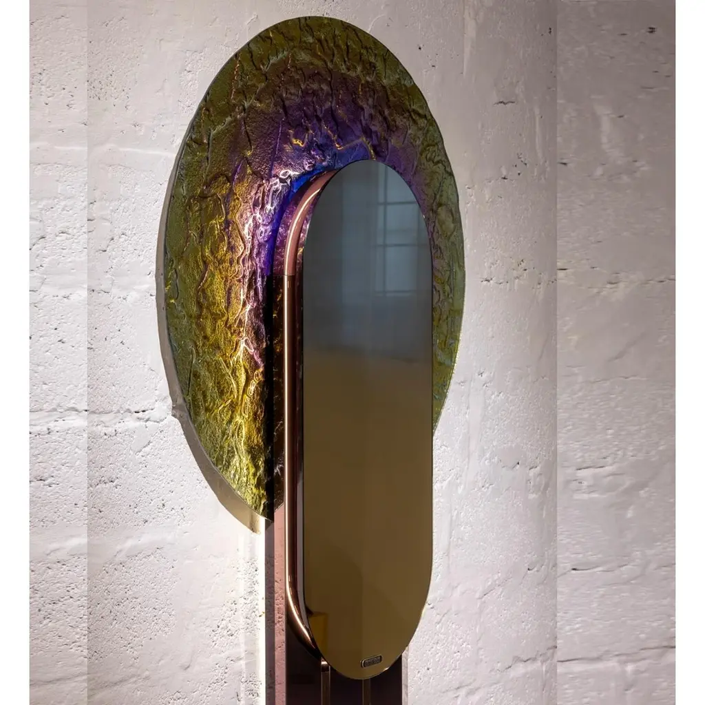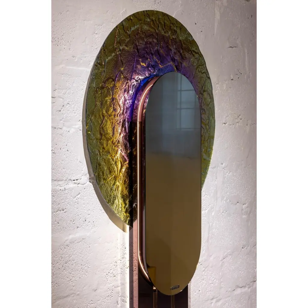 Summer Four Seasons Decorative Full Length Mirror by PANOPTIKUM COLLECTIONSLimited EditionDimensions: D 10,8 x W 90 x H 210 cm.Materials: Decorative glass and iron.Transform your space with one of the four mirrors from the «Four Seasons»collection.Each of these mirrors combines functionality, beauty, and innovativetechnology, bringing a unique atmosphere and elegance to your interior while showcasing the aesthetic characteristics of its owner. The collection is inspired by the four seasons. SUMMER reflects the warmth and brightness of summer days, bringing a sunny mood to the interior.PANOPTIKUM COLLECTIONS is proof of the feasibility of the materialization of ideas, even the most unusual ones, which were embodied in astonishing yet functional interior objects. We created this platform for experimentation with design objects, ideas, materials, shapes, and textures. This is a real collection of unusual objects, each of which was once just a reckless idea. The most expensive ideas are those whose implementation requires not only material resources but also courage, intuition, and skill.