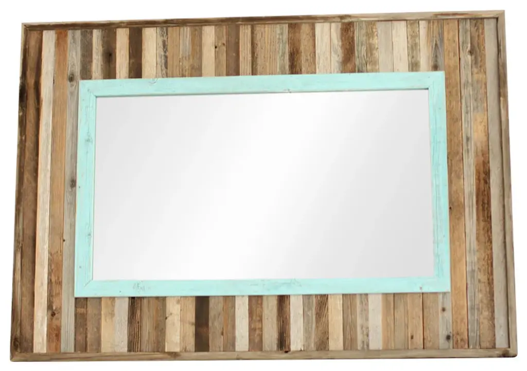 Summerland MirrorA lot of time and detailed work goes into each mirror. Customers have said how they love how each little slat of wood varies in color and tone, and that its the perfect rustic mirror with just the right amount of character and charm. This detailed mirror has a slight barnwood raised outside edge. This mirror can be hung horizontally or vertically.Dimensions: 26 inches x 38 inchesColor: Reclaimed wood, your choice of colored trimProduct Includes: Mirror, Frame, D-ring hanging hardwareMaterials Used: reclaimed barnwood, mirrorMade in: USAFrame Style: Barnwood mirror with small slatsShips via FedEx in 2-3 weeks