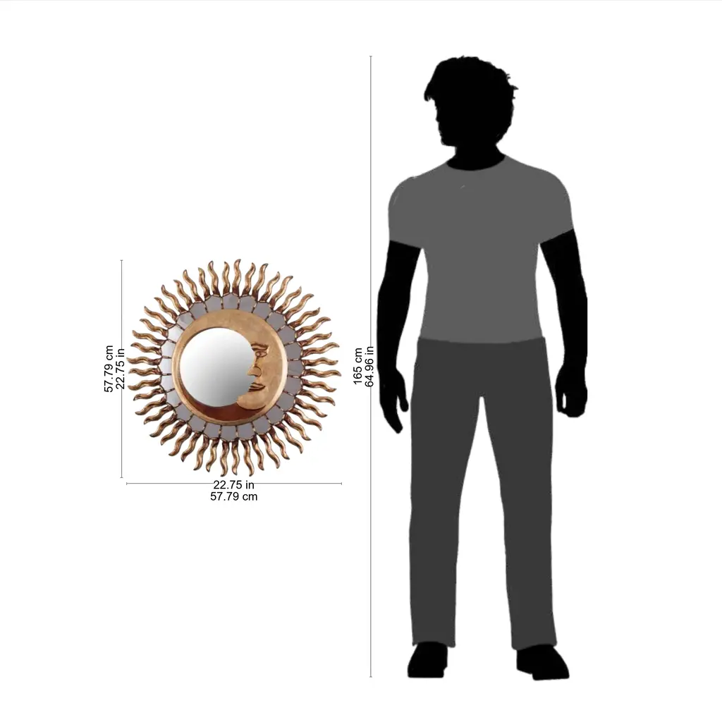 Sun And Moon Themed Bronze Leaf Wood Wall Mirror- Cuzco Eclipse