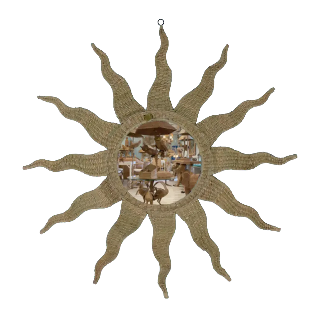 SunBurst Mirror by Mario Lopez Torres. There are minor imperfections to the hand-made woven rattan. Signed Mario Lopez Torres Est. 1974. (see photos)