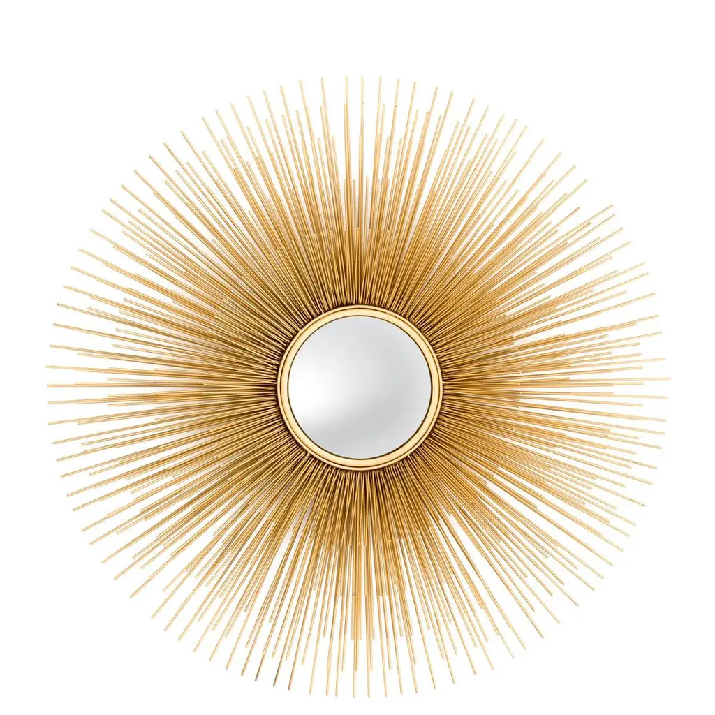 Sunburst Mirror, Gold-Plated Metal And Convex Mirror.
