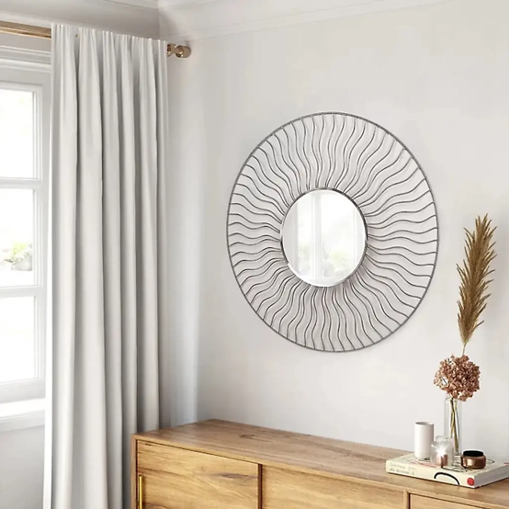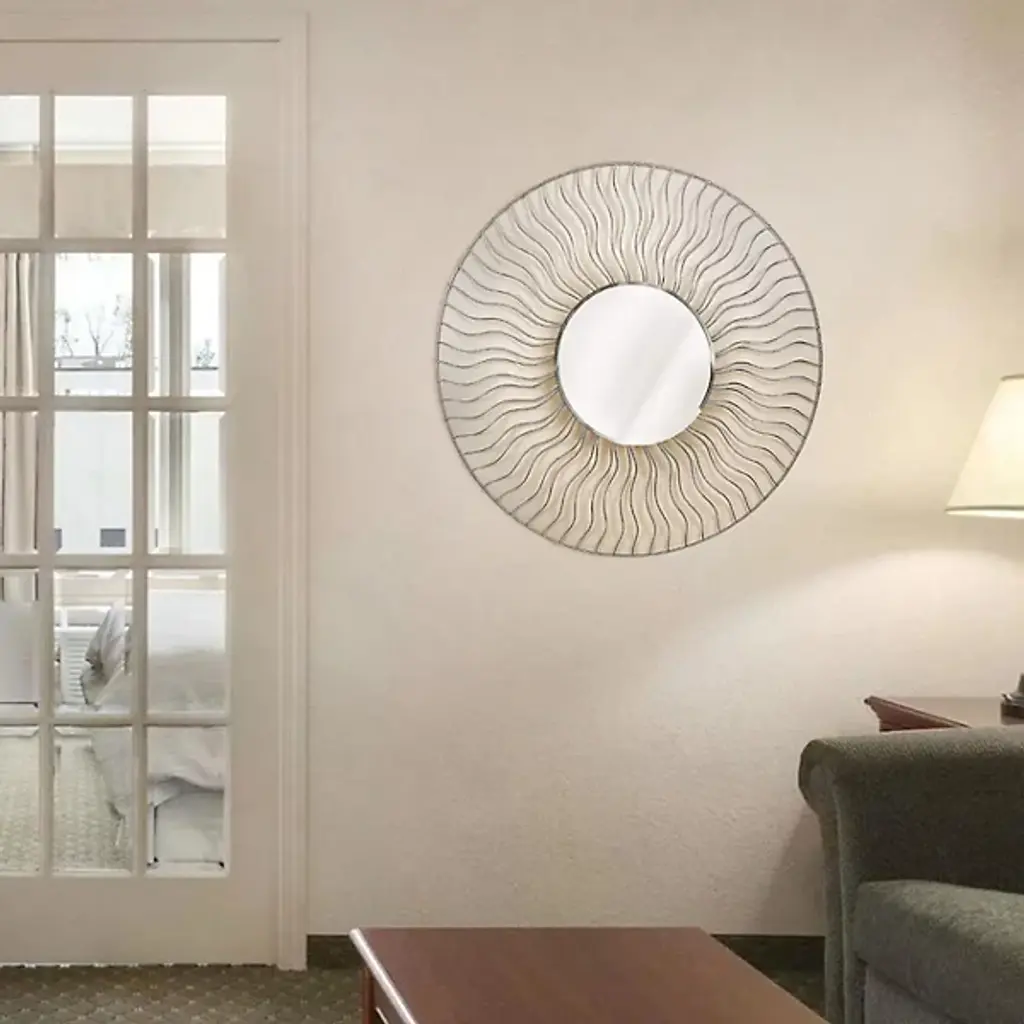 Bring a feeling of completion to your decorative arrangement with the Sunburst Mirror Set of 2 by Nova of California. Fine steel has been worked into a circular formation that draws your gaze. Along the surface of this mirror are rippling patterns styled as beautiful sun rays. This mirror secures to your wall so that you can take in your reflection before heading out for an evening in the company of friends and family.