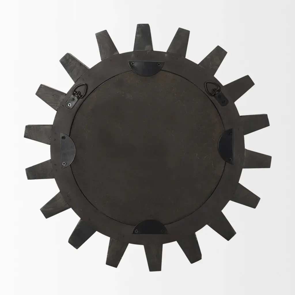 Sundance Black Solid Wood Frame Round Cog Mirror, 17"