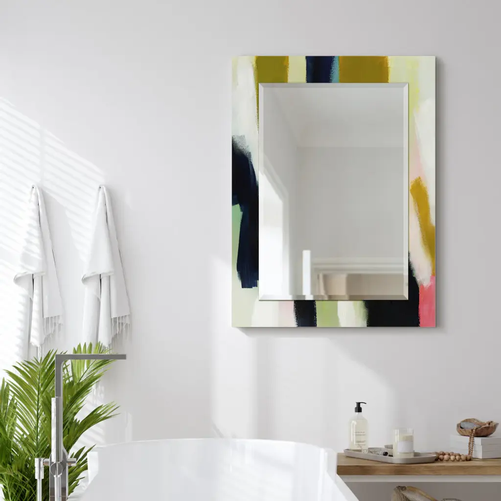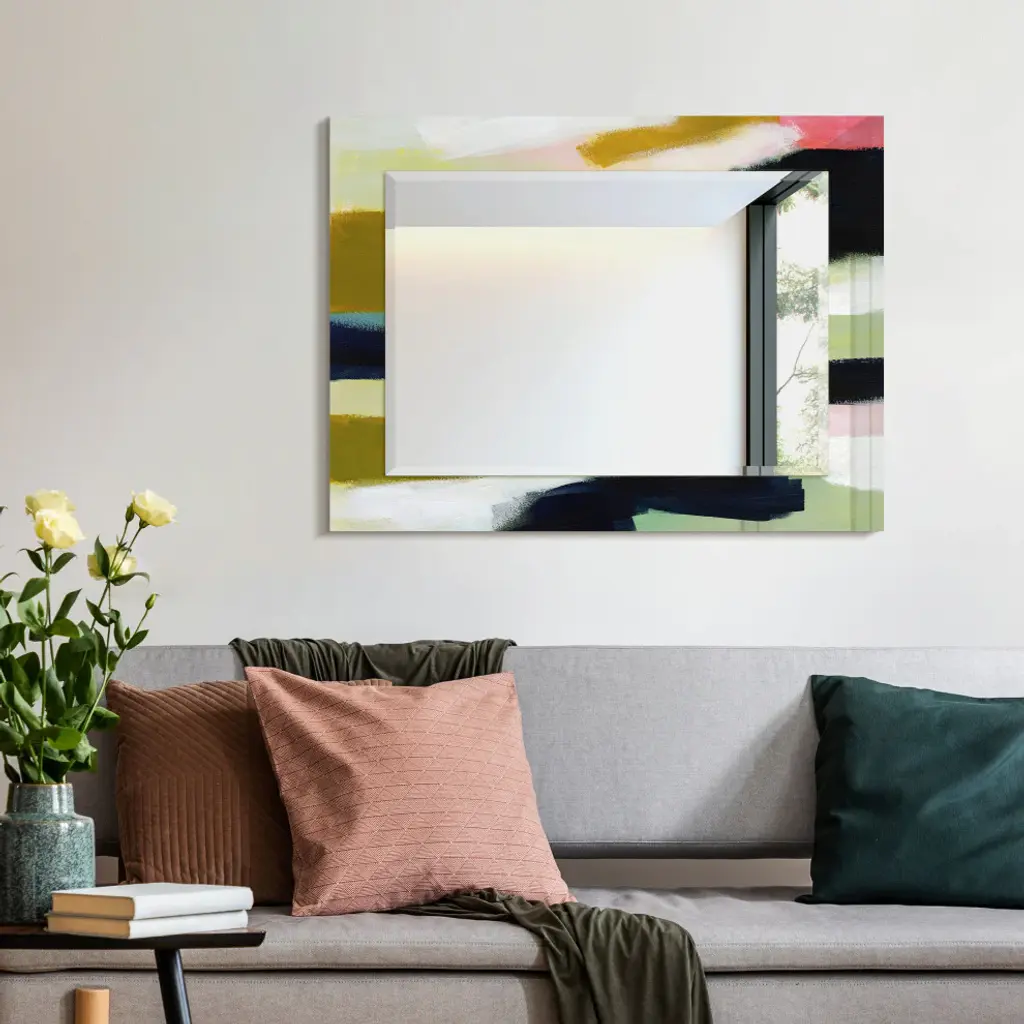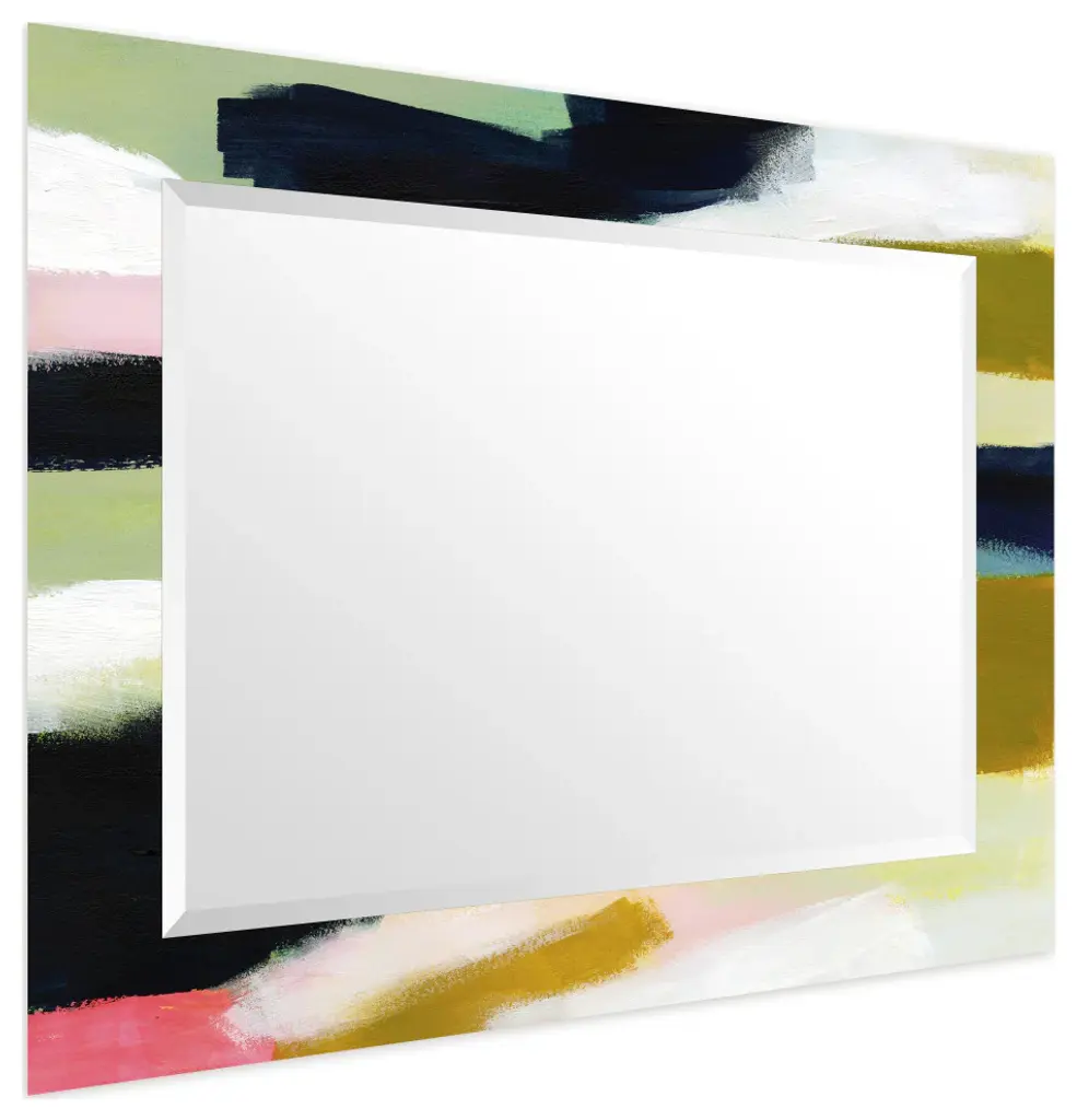 "Sunder" Beveled Mirror On Printed Abstarct Tempered Art Glass, 40x30"