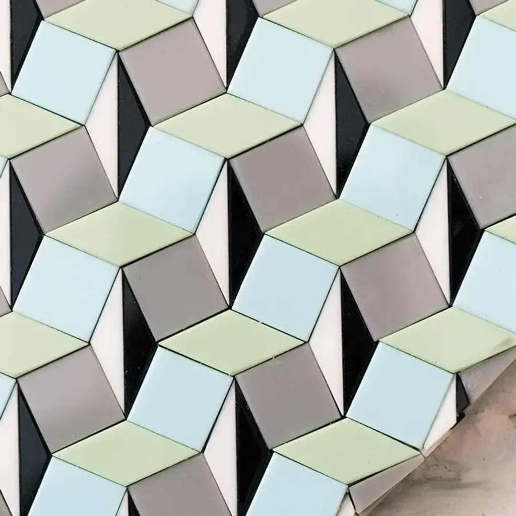 The risvolti mirrors, designed by vito nesta and made in collaboration with effetto vetro, mix in an unconventional way a high-tec material as supermirror steel and the opaline glass gone out of production since the ‘50. The steel modernity contrasts the vintage taste of the colored mosaic tassels, skillfully placed to design two different patterns, risvolti a and risvolti b.