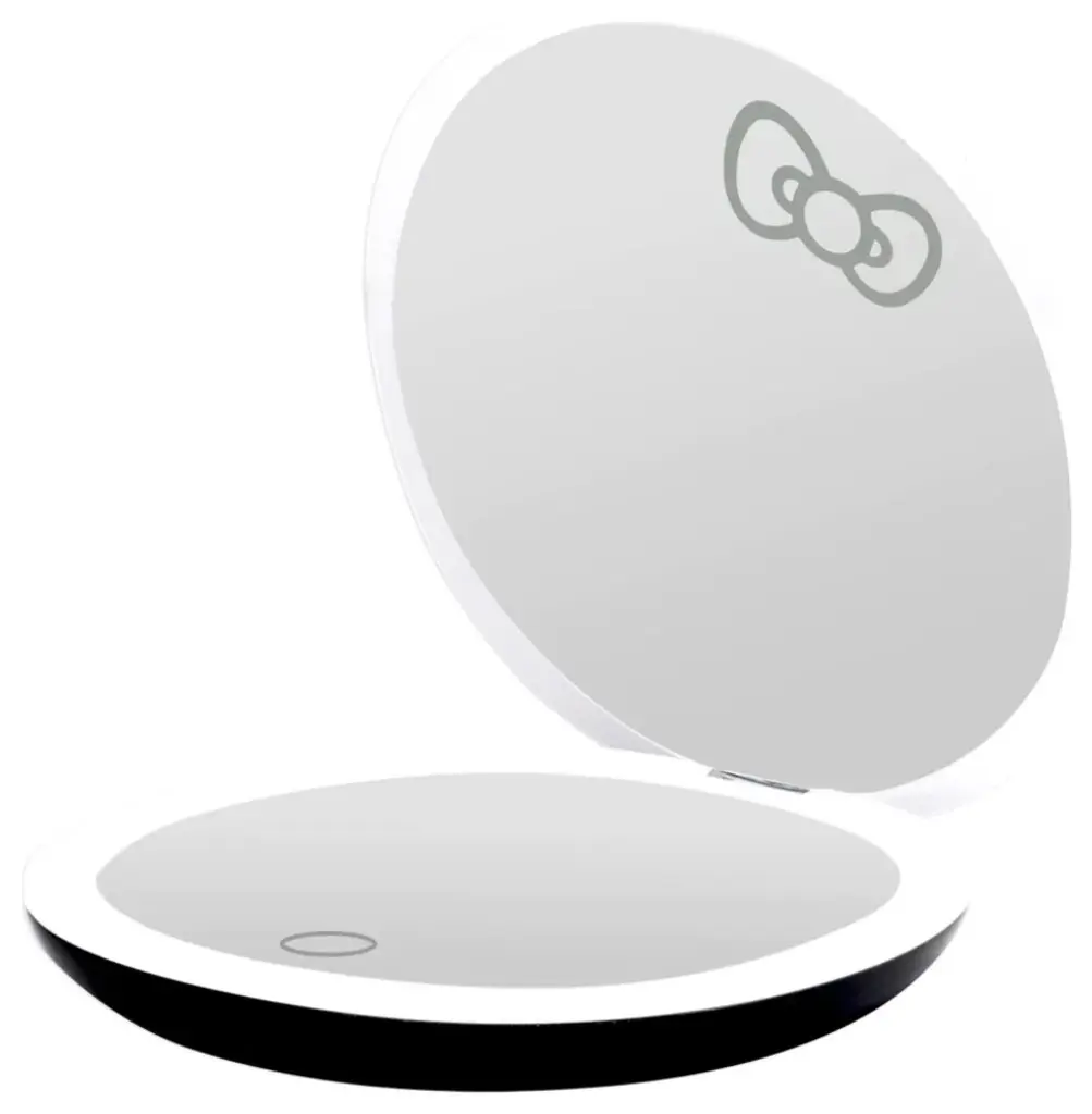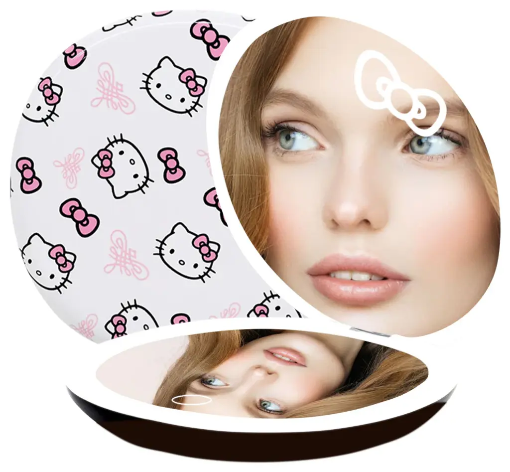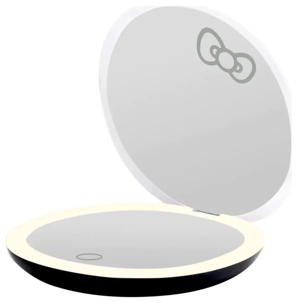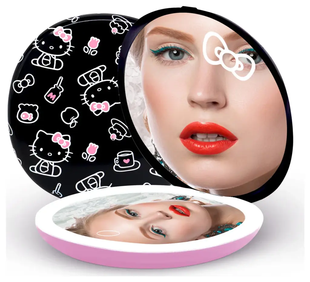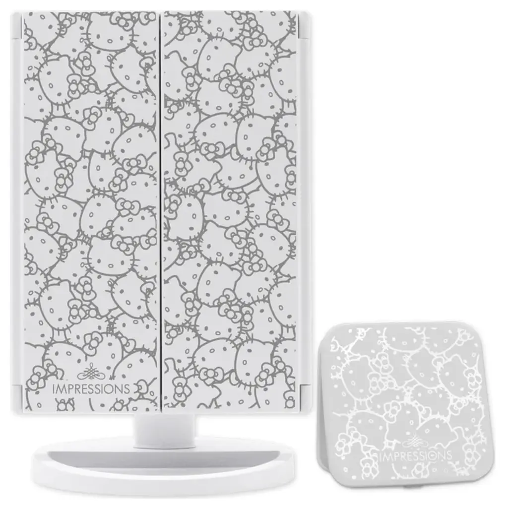 Impressions Vanity introduces the Hello Kitty Supercute Signature print compact vanity makeup mirror. The must have accessory for your every beauty enthusiast! If you''re looking to take your outdoor vanity experience to the next level, this hello kitty compact mirror with light is your ideal companion. Why do you need it? Well, this small hand mirror with light combines functionality and style like no other. Its smooth finish and adorable Hello Kitty design add a touch of charm to your everyday routine, making your beauty rituals more enjoyable. The iconic Hello Kitty Supercute Singatured on the top face mirror not only adds a delightful flair but also reflects your inner Kitty with a Signature. One of the standout features of our compact personal mirrors is the Daylight LED Lighting. Whether you are getting ready in the bright sun or a dimly lit room, the adjustable brightness ensures you have the perfect lighting ambiance to help you achieve your desired look. No more makeup mishaps due to poor lighting! The dual sided portable mirror with a 3x magnified top mirror allows you to achieve intricate makeup and grooming with ease. Additionally, the soft touch sensor lighting makes it travel friendly, ensuring you can stay fabulous on the go. Elevate your beauty routine with the Impressions Vanity Hello Kitty The Swirl LED compact mirror. It is more than just an hello kitty LED mirror; it is a reflection of your style and an essential tool for your beauty arsenal. Get yours today and embrace the Hello Kitty charm in every makeup session.Features:HELLO KITTY SIGNATURE: Elevate your outdoor vanity experience with the Impressions Hello Kitty Mirrors smooth finishing and adorable Hello Kitty supercute signature print that adds a touch of charmADJUSTABLE DAYLIGHT: Enjoy perfect illumination in any situation with our small travel mirror with light. The daylight LED lighting is adjustable, ensuring you achieve the desired light ambiance for flawless makeup application3X MAGNIFIED MIRROR: Achieve detailed and precise makeup with the dual sided portable vanity mirror that includes a 3x magnified top mirror. Perfect for ensuring every detail of your look is impeccableTOUCH SENSOR: Enhance usability with the soft touch sensor, making it easy to operate the lighting ensures you can use our personal lighted makeup mirror during long journeys, ensuring you always look your best