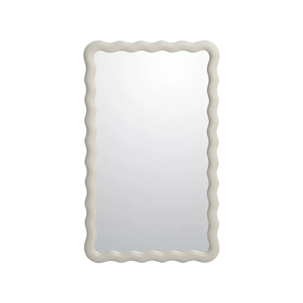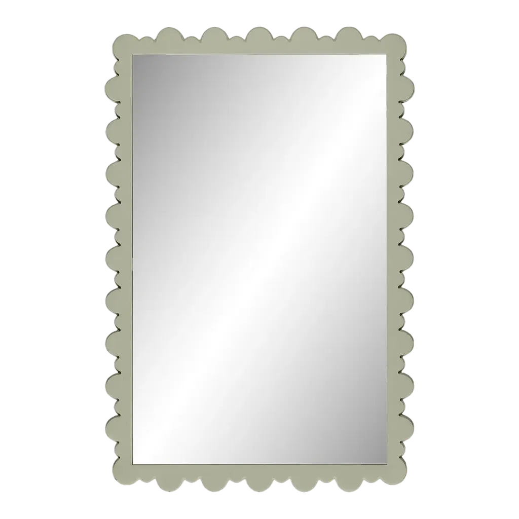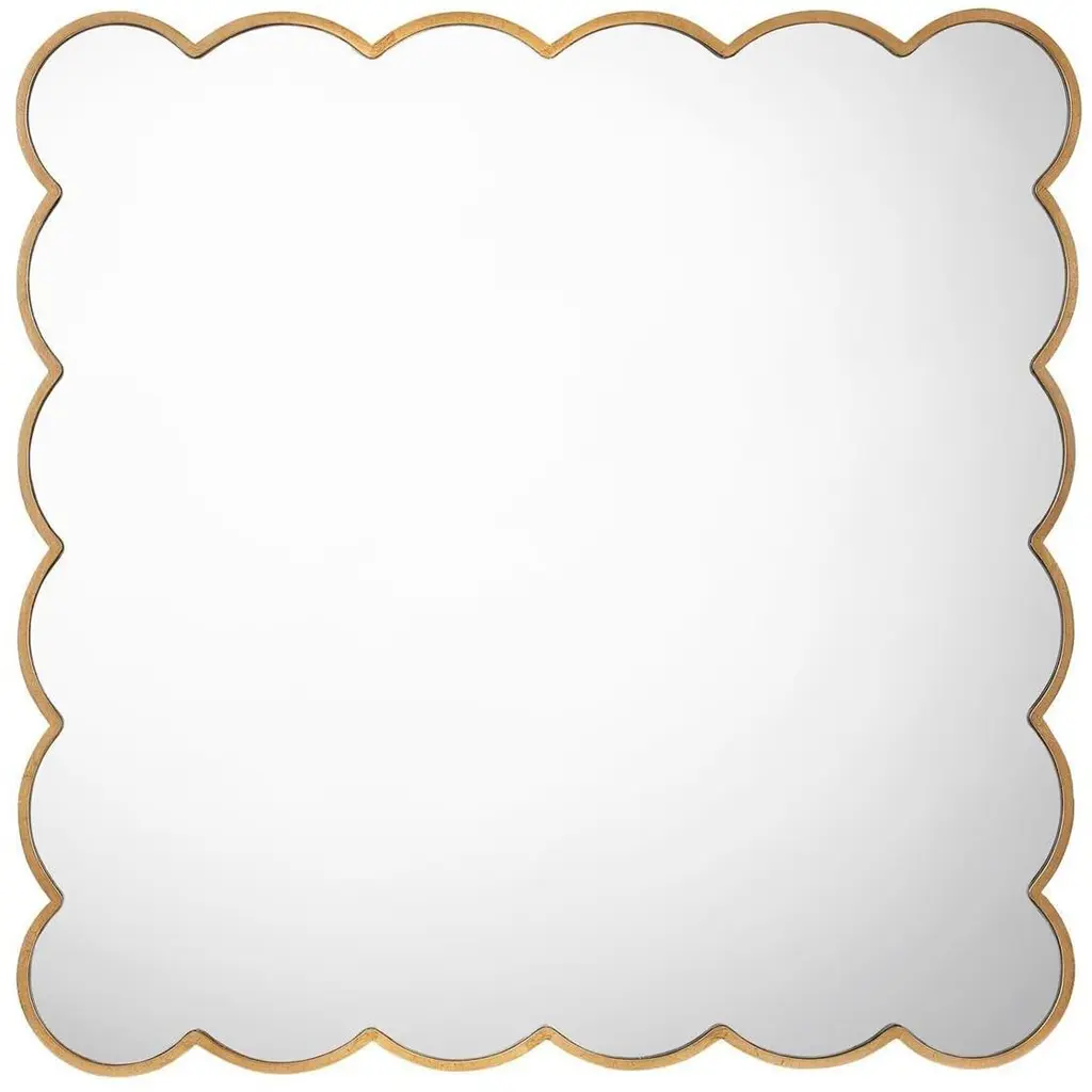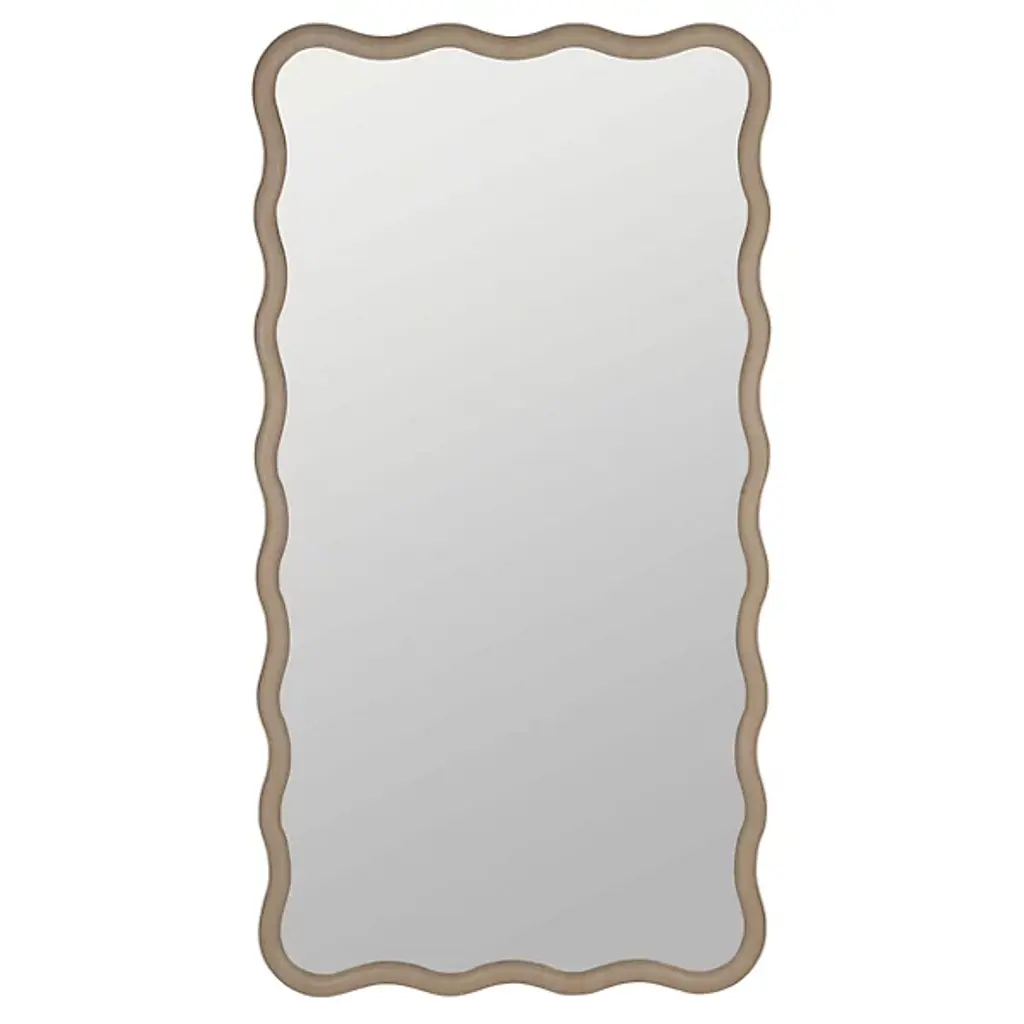 The Sura Mirror is a gorgeous design statement with a playful, yet elegant silhouette. Crafted from beech wood, the slender frame in a Gold Coast finish displays a scalloped shape. This stylish mirror is affixed with French cleats and may hang in both portrait and landscape orientations.